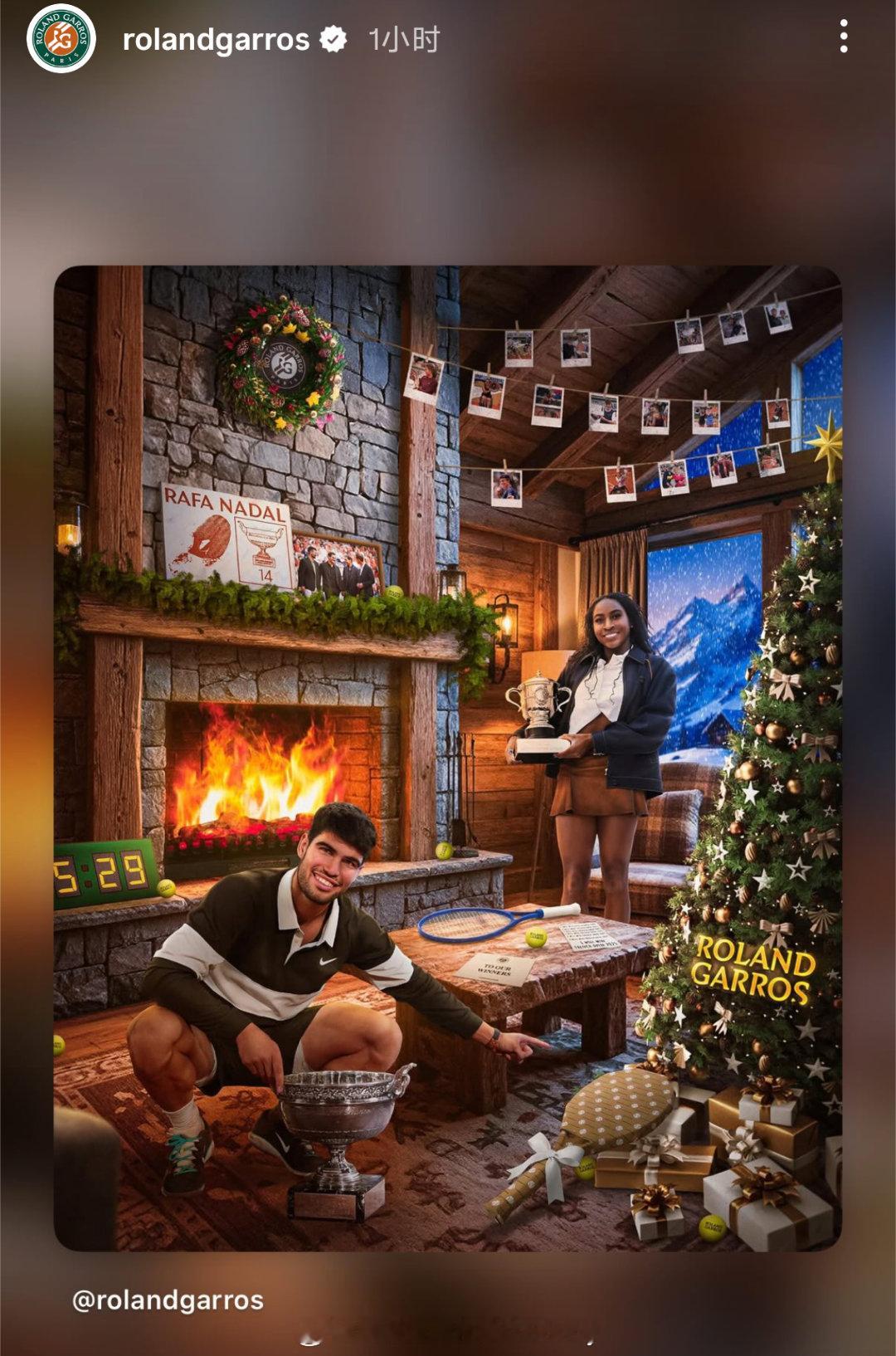 法网官网发文㊗️两个2025法网冠军圣诞快乐🎄网球talking大会网球圣诞节