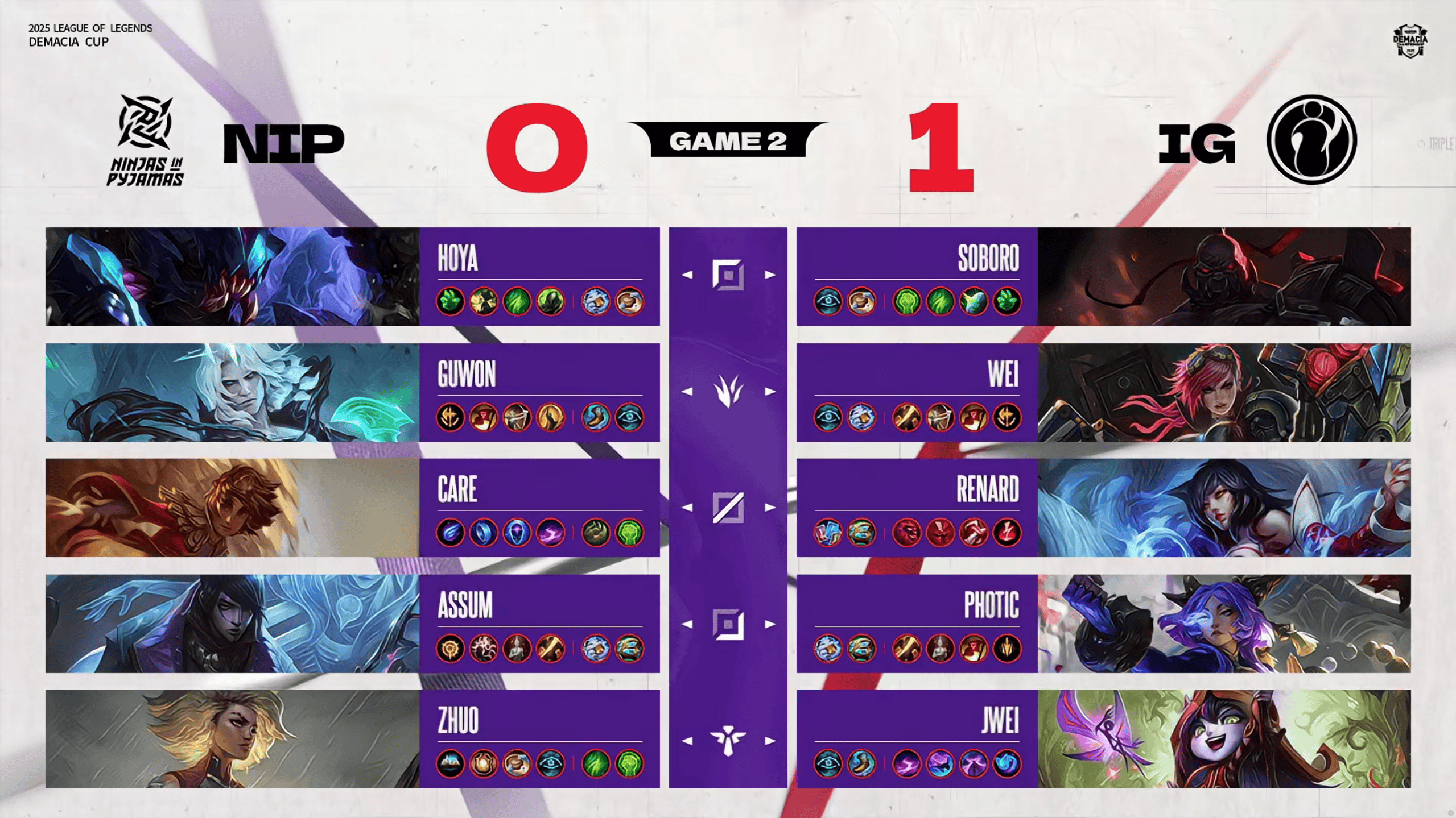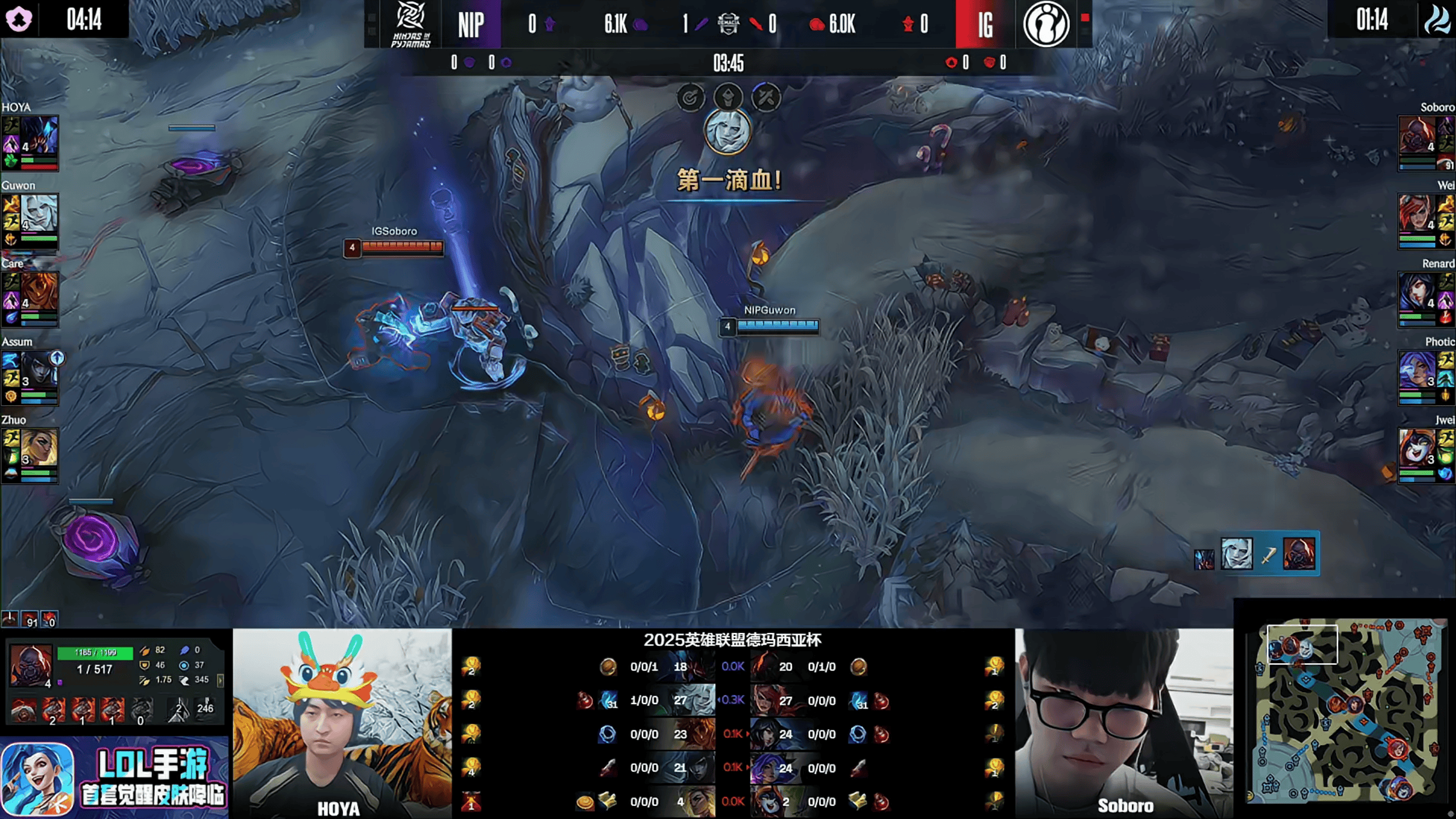 虎扑12月25日讯Game2:蓝色方NIP,红色方IG