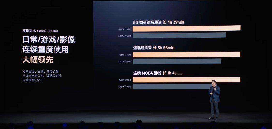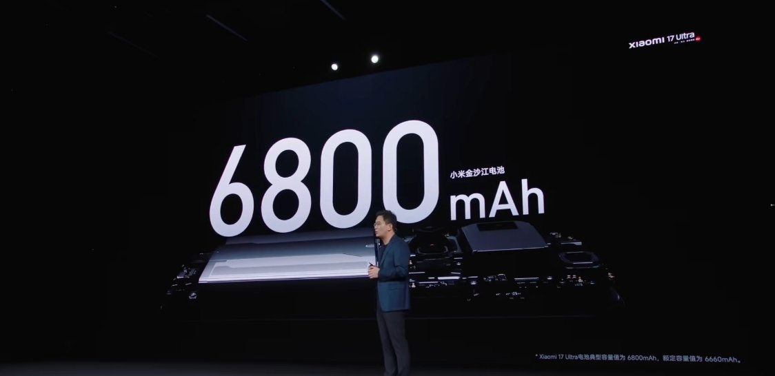 小米 17 Ultra 内置 6800mAh 小米金沙江电池(16% 硅含量,能