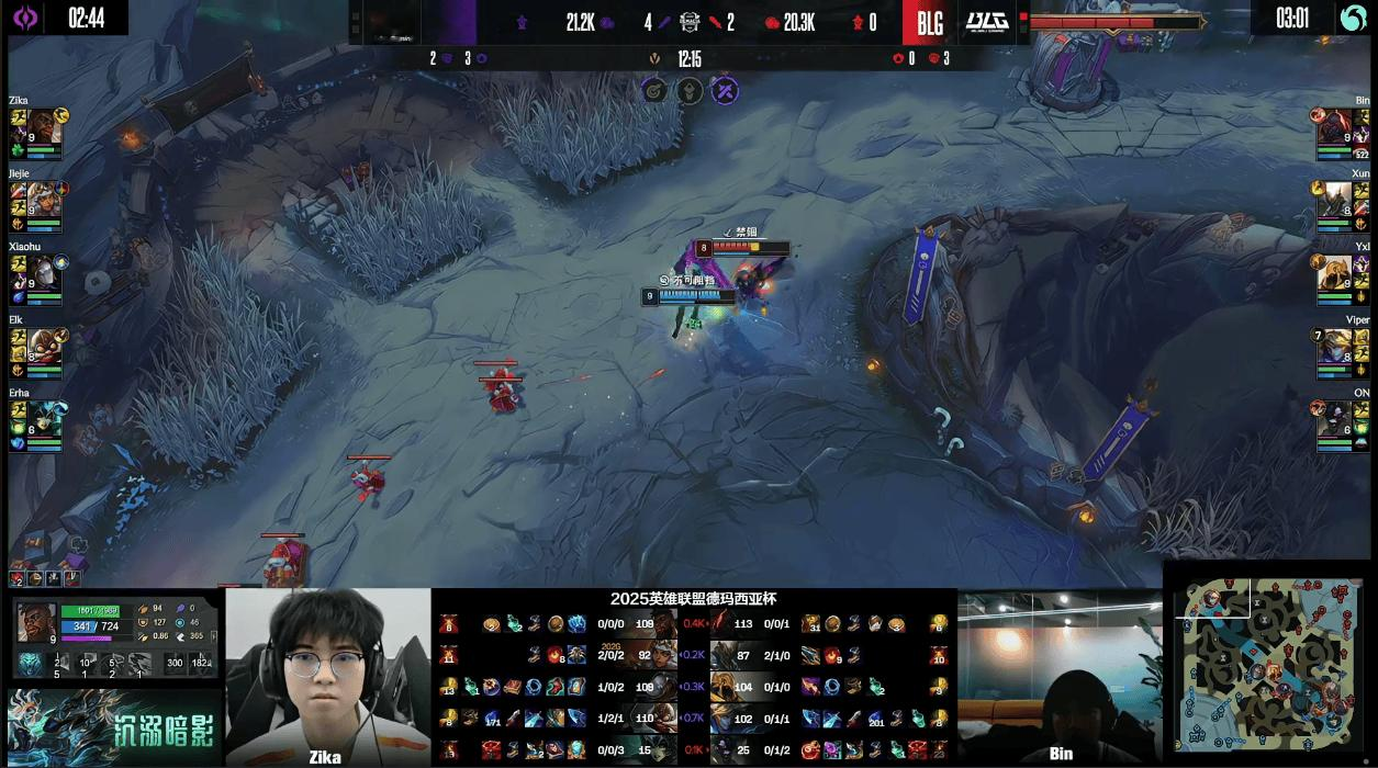 12分钟,Zika奎桑提Q3击飞Viper伊泽瑞尔,随后Zika闪现跟上完成单杀