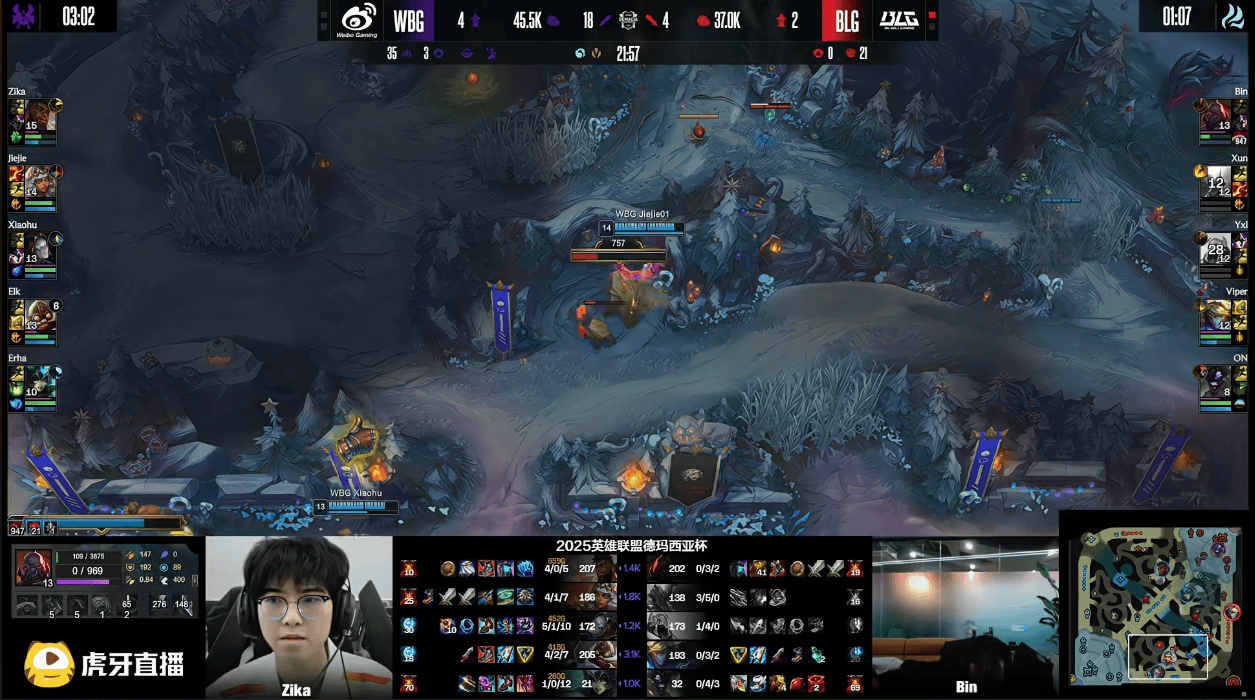 3分钟,Viper与Xun强行追击,Xiaohu发条及时支援WBG完成1换3