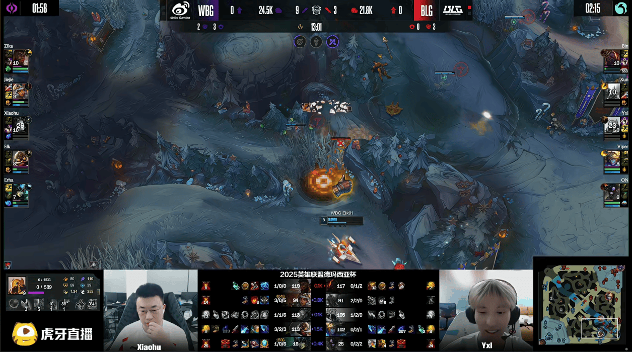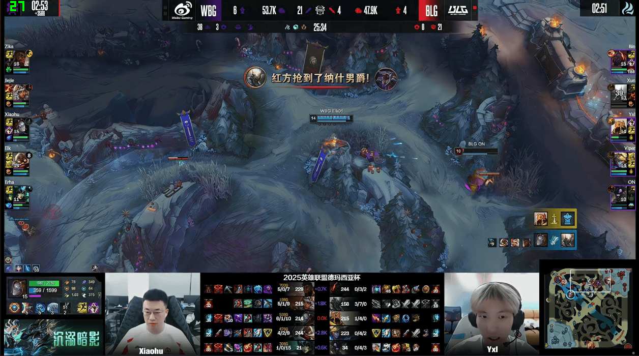 虎扑12月25日讯GAME2:WBG蓝色方;BLG红色方
