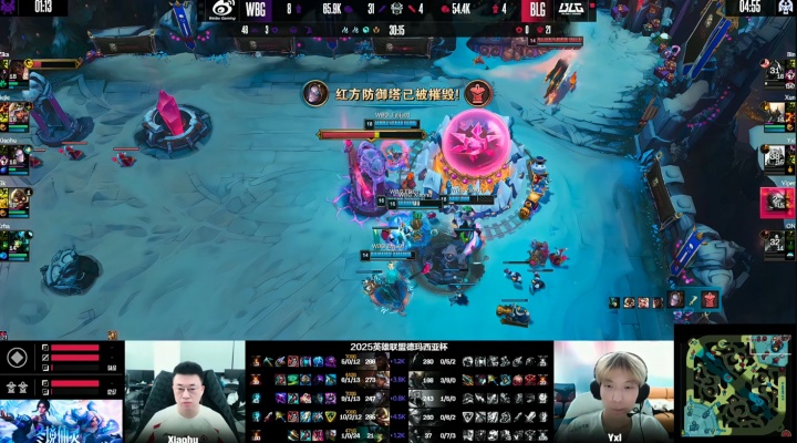 直播吧12月25日讯德杯小组赛第二阶段WBG击败BLG扳平比分,本局WBG更是以32-4的巨大人头比碾压BLG。