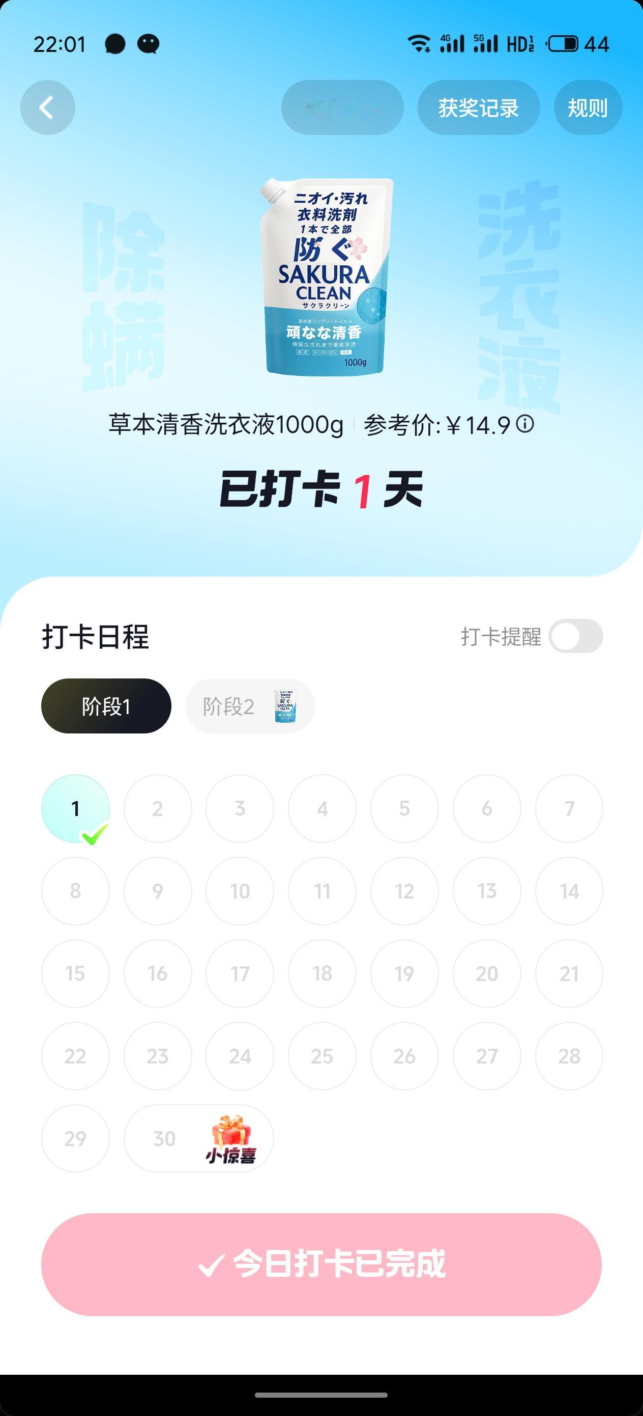 打卡第一天 走一步看一步, 看看有啥招数 其实想换个礼品和挑战周期的 但是没得选