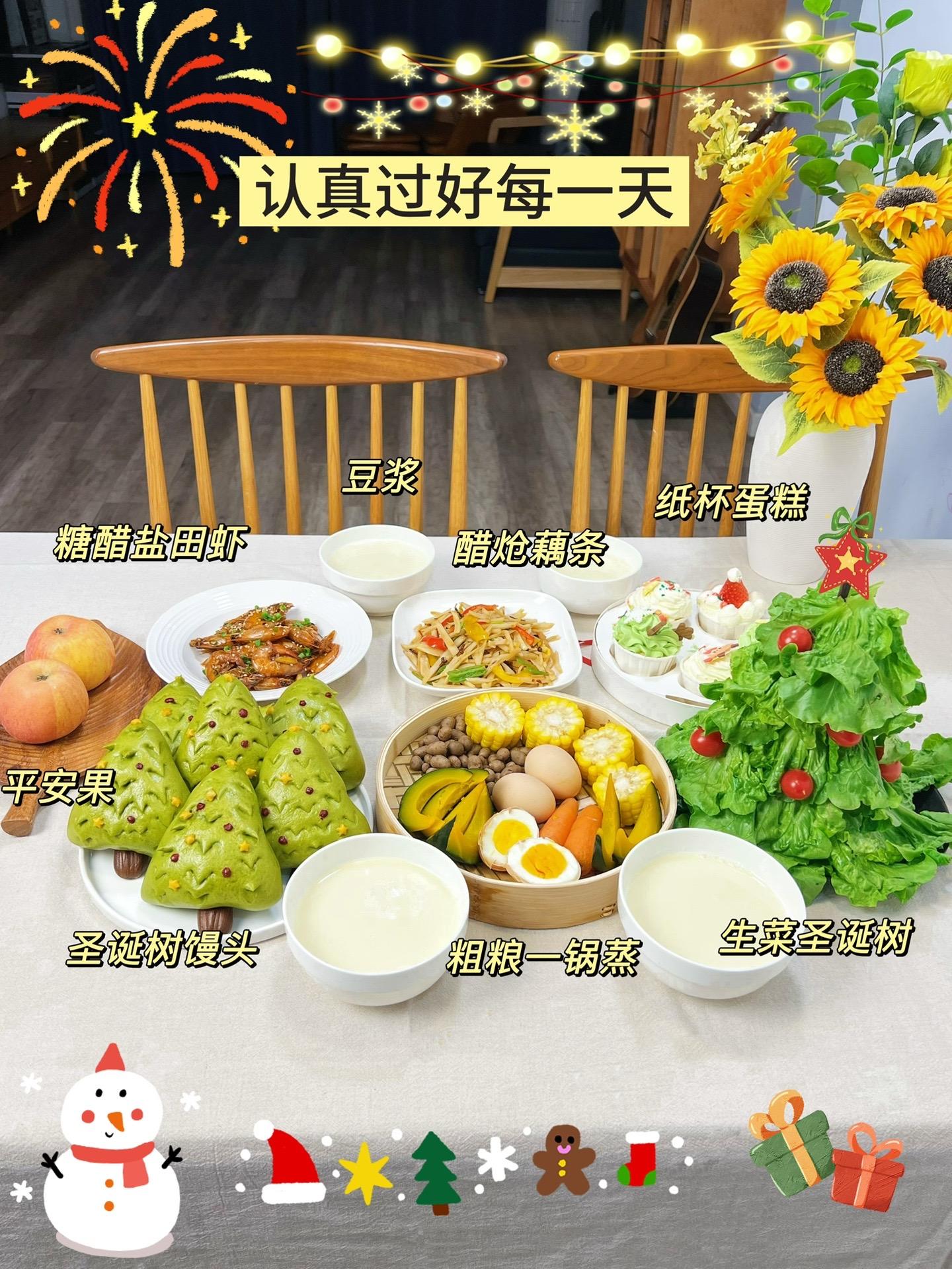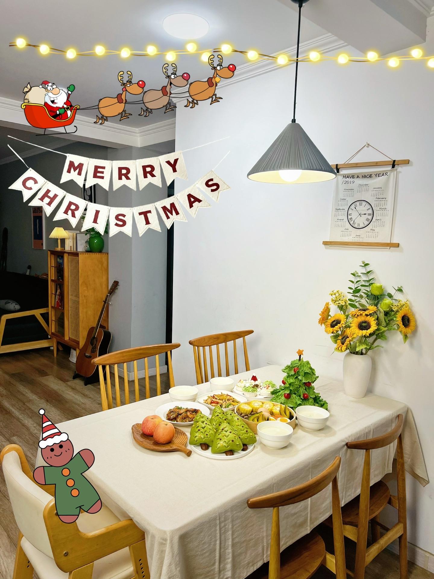 婆婆做的生菜圣诞树更是给家里增添了节日的氛围。