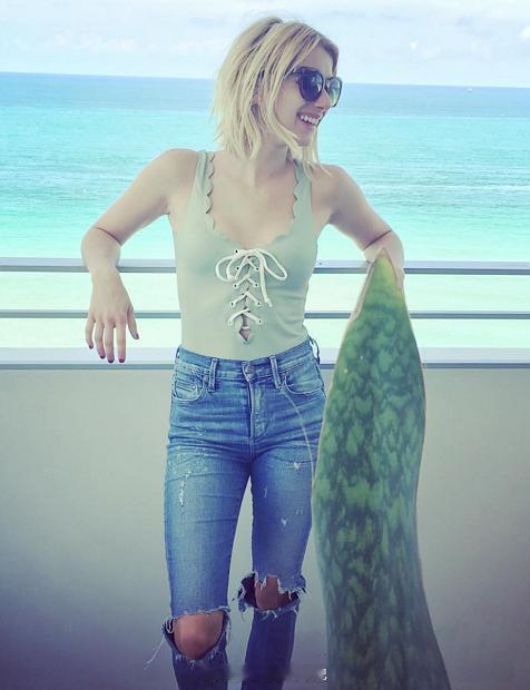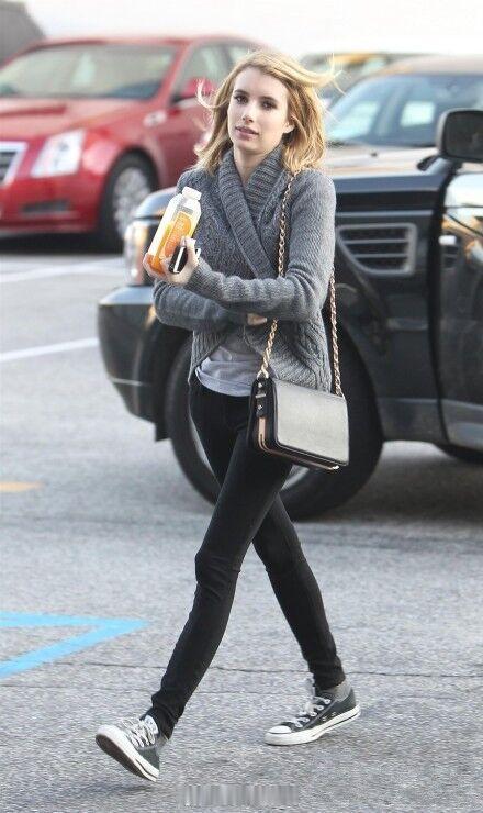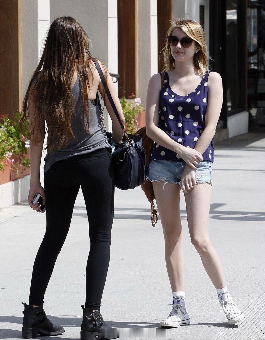 2010年代,街拍常客艾玛罗伯茨。10年代的好莱坞四小花旦之一,娇小的身材,简单