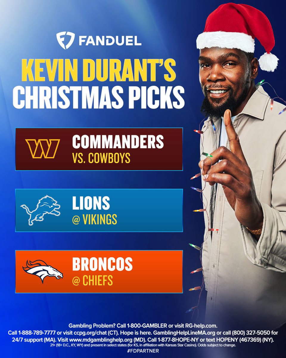 NBA球员杜兰特在推特上写道:圣诞快乐,加油@Commanders(华盛顿指挥官队)。