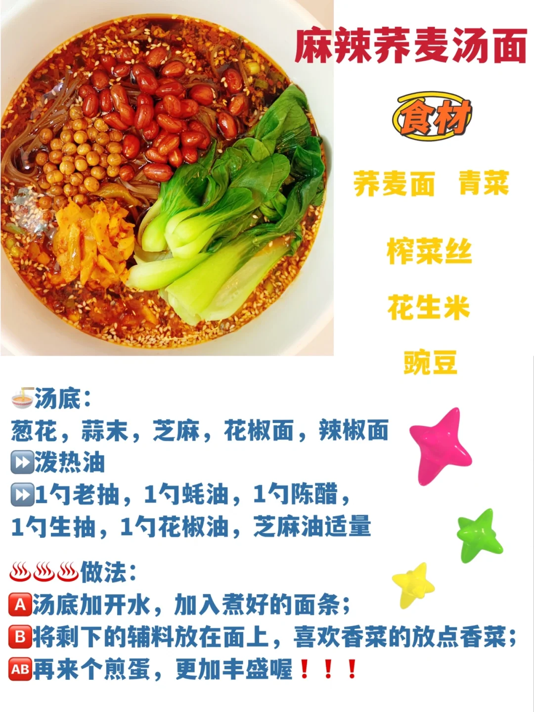 🅱️把剩下的辅料放在面条上,喜欢香菜的可以放点香菜🆎来个煎蛋🍳更美味