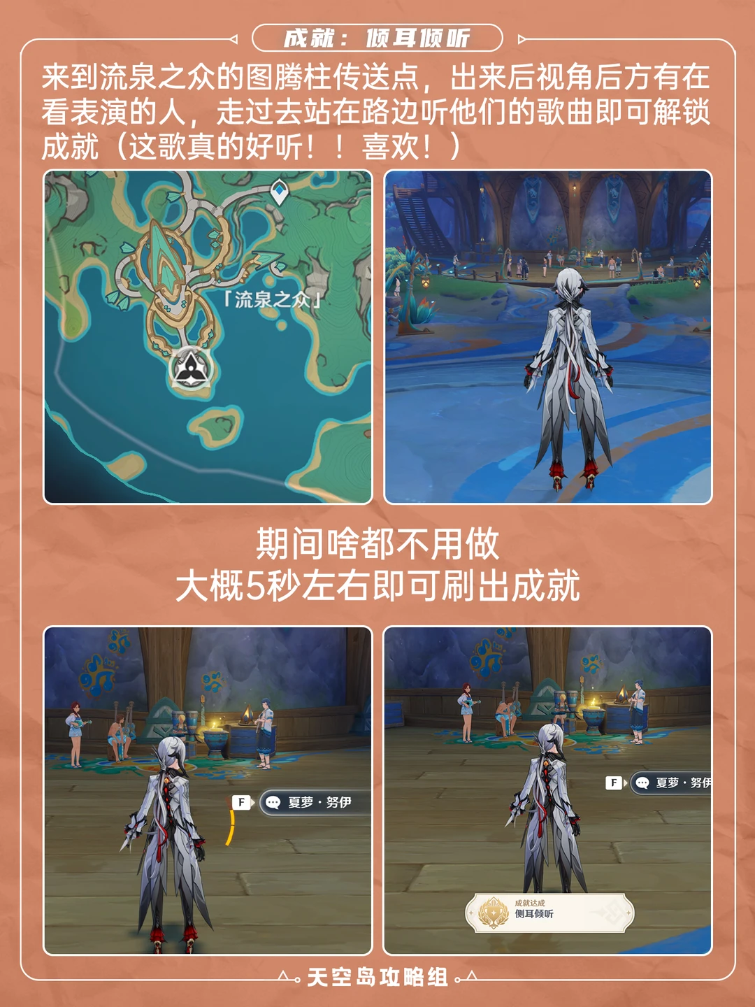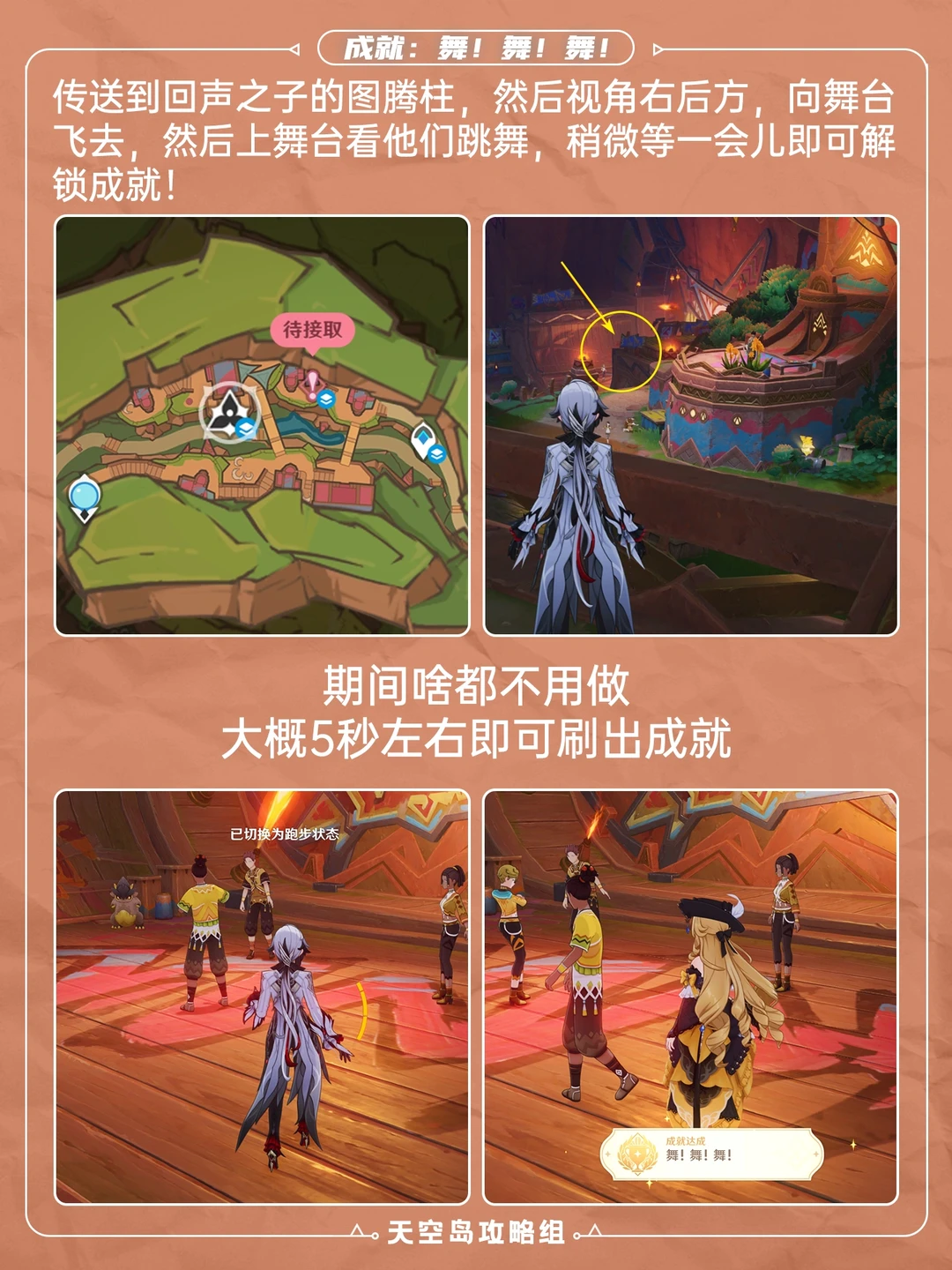 5.0版本纳塔新增成就「舞舞舞」+「侧耳倾听」 「舞舞舞」:回声之子图腾柱p2位置 站5秒 「侧耳倾听」:流泉之众图腾柱p3位置 也站5秒 原神 原神日常 原神萌新 原神攻略 原神创作者激励计划 原神纳塔 纳塔