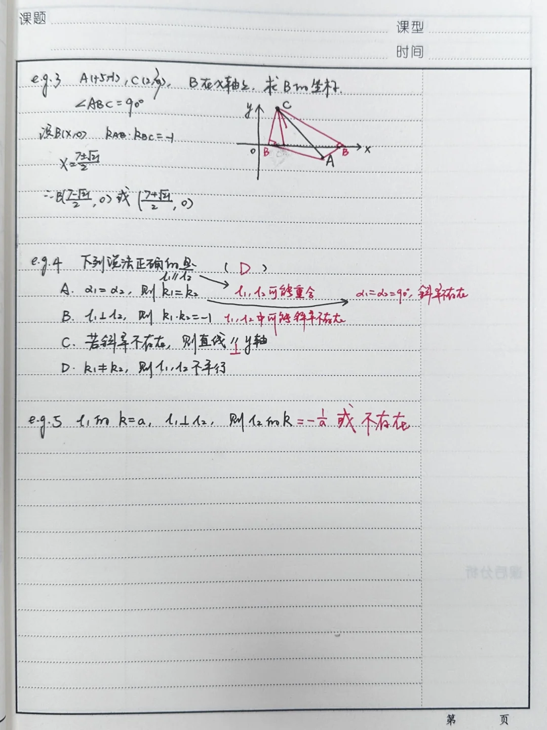 好想赶快上新课,这周都在为明天的月考复习,耽误一整周新课时间,感觉不值得。而且考试范围也挺让人无语的,明天看到卷子就知道了… 下周把2.1.1直线的倾斜角和斜率 2.1.2 两条直线平行和垂直的判定放到一起讲~