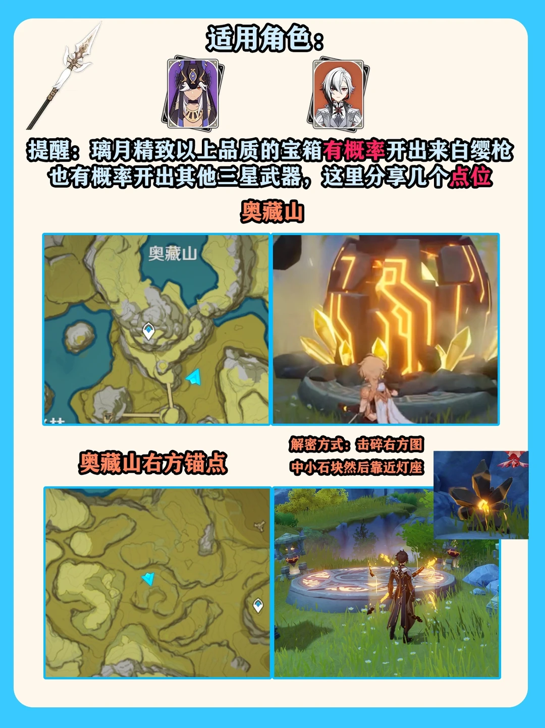 原神创作者激励计划 原神枫丹 原神攻略 原神 大家好,这里是小橙子猪弟 今天给大家带来的攻略是 原神白缨枪获取方式 白缨枪只能通过开启璃月精致及以上品质的宝箱获得 是抽不到的,大家千万别融! 祝大家能运气好,开到白缨枪! 小橙子猪弟在这里祝大家抽卡不歪,十连双金