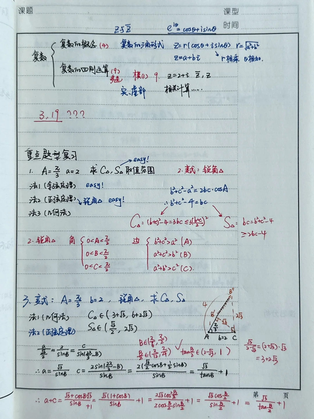 还有三天半期考试,范围是三角函数、平面向量和复数,这是我的一个复习方法,哈哈,推荐给大家,题目分类讲解,详略得当~