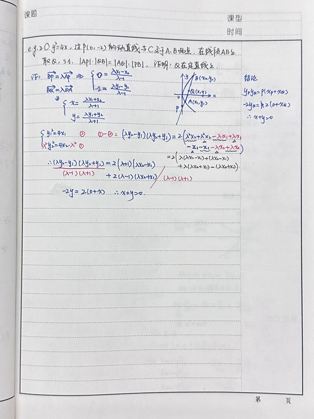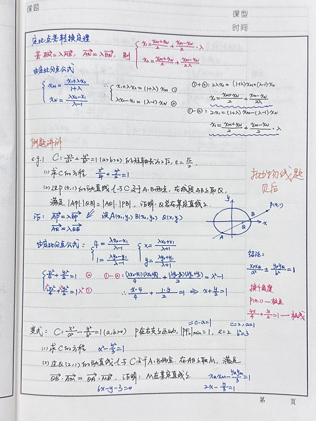 备了一会定比点差法,又是一个充实的晚上,备课本写得不错,蝴蝶定理也开了个头… 这些知识好难哟,好打脑壳,也很难讲。 反正我高中没学过,也不知道该不该给学生讲[哭惹R]