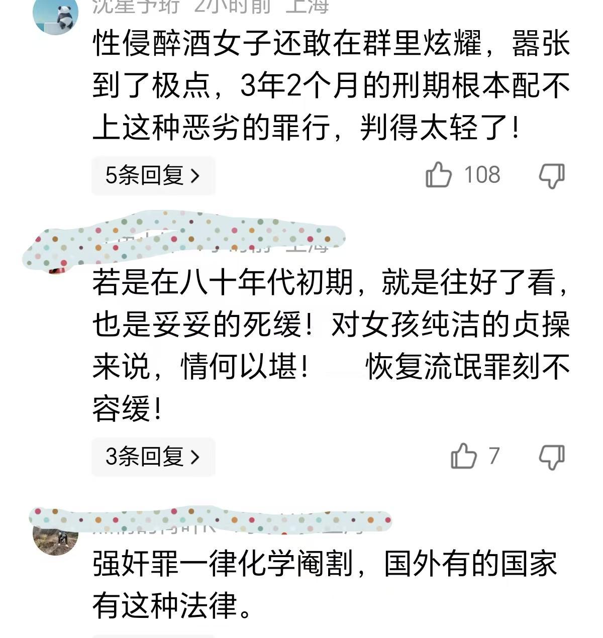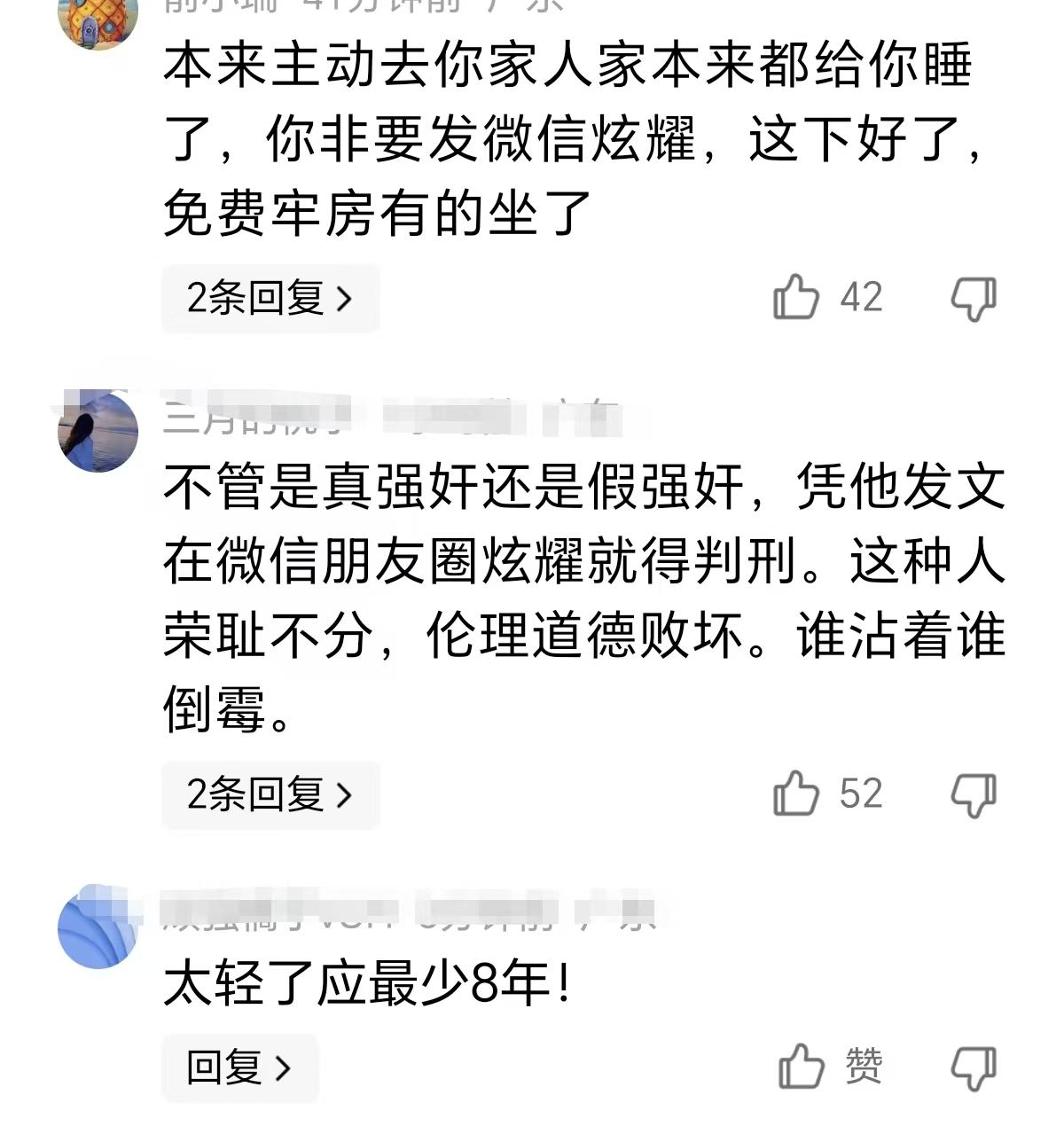 “自作自受!”他也太嚣张了吧!性侵了一位醉酒女子,还发到群里炫耀,结果该女子看到聊天记录,这才发现自己被性侵了。男子获刑3年2个月。 没有网友同情这个男子。 一是他趁人之危,在女子醉酒状态下性侵了她,二是事后还发文在群里炫耀。 这样的人,被一审判刑3年2个月是罪有应得。 据报道,今年4月份,男子邹某在酒吧玩的时候认识了女子补某,又把补某带到自己家中继续喝酒。 可能是喝多了,补某就到床上休息。 看到这里,不少网友认为,补某既然能去一个刚刚在酒吧认识的陌生男子家中,她应该对可能发生的事有心理准备。 如果两人正常发生性关系,补某应该是不会介意的。 既然补某已经喝多了,而且还在自家的床上休息,邹某也就显露本色,在补某醉酒的情况下,和她发生了性关系。 看到这里,不少网友有点不能理解,既然在酒吧刚刚认识的补某已经来到自己的家中,还和他继续畅饮,为什么邹某还要趁人之危,在补某醉酒不知情的情况下和她发生性关系? 这样的结果就是性侵,否则就可以叫做两情相悦,结果有着天壤之别。 事实上,邹某确实不是君子,就是趁着补某醉酒对她实施了性侵。 但更过分的是,邹某还在群里分享这件事。 这也太嚣张了吧! 从报道中我们可以推断,如果不是邹某在群里的分享,补某也不会看到相关的聊天记录,她也就不会知道自己被性侵了。 可以想见,当她看到那些聊天记录的时候,她的内心该是多么愤怒。 所以,她告邹某强奸,是完全可以理解的。 一审判决结果是,邹某获刑3年2个月。 这应该是他自作自受,罪有应得吧!