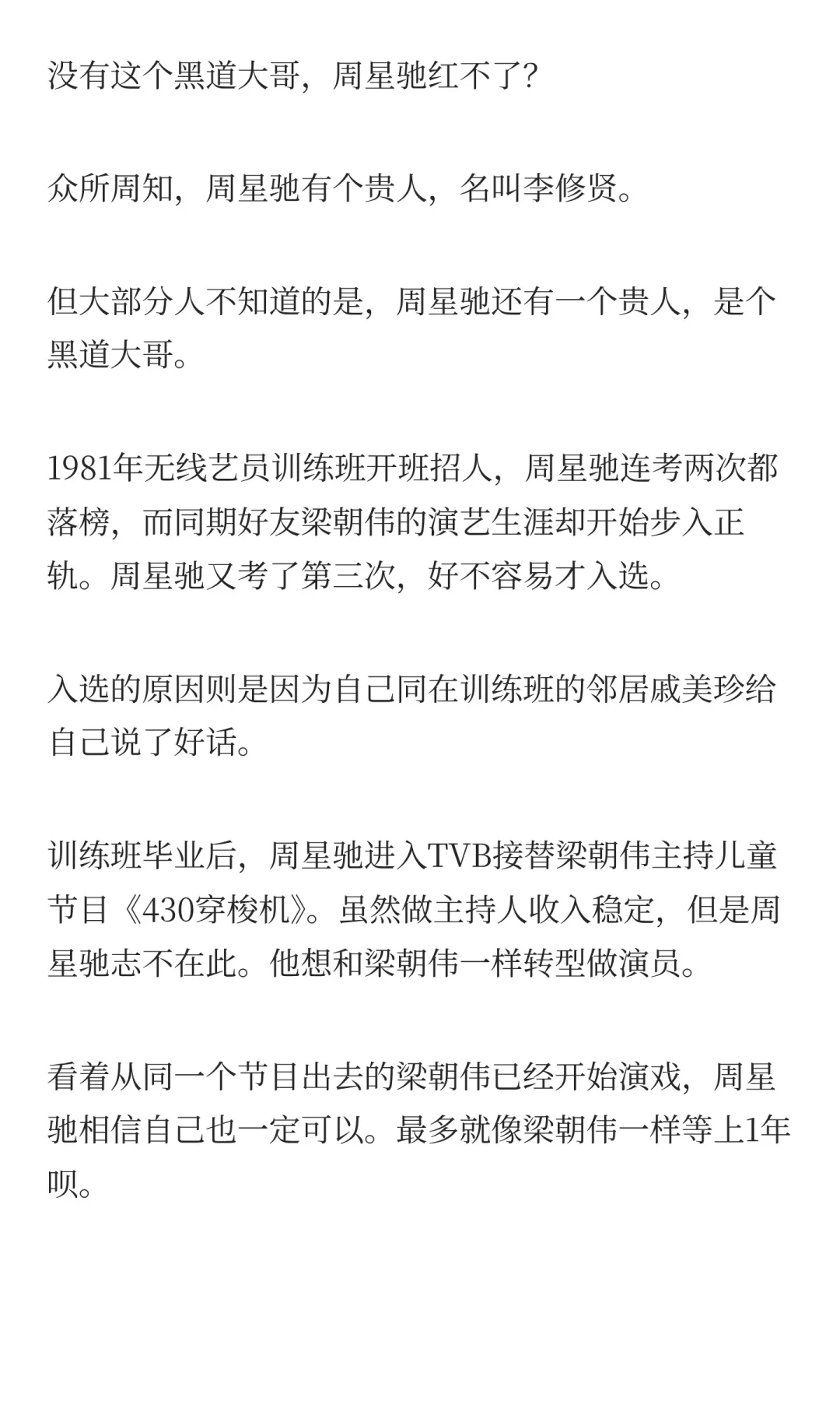 没有这个黑道大哥,周星驰红不了?