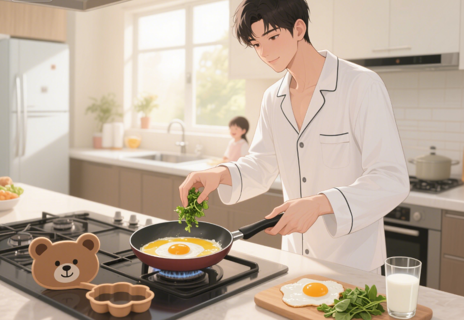 从那以后,我成了家里最 “合格” 的丈夫。每天早上六点半准时起床,走进厨房给苏蔓和朵朵做早餐。苏蔓喜欢吃煎蛋,蛋黄必须是溏心的,多一分熟都要挑出来;朵朵不爱吃青菜,我就把菠菜切碎,和鸡蛋液混在一起,煎成她喜欢的小熊形状。