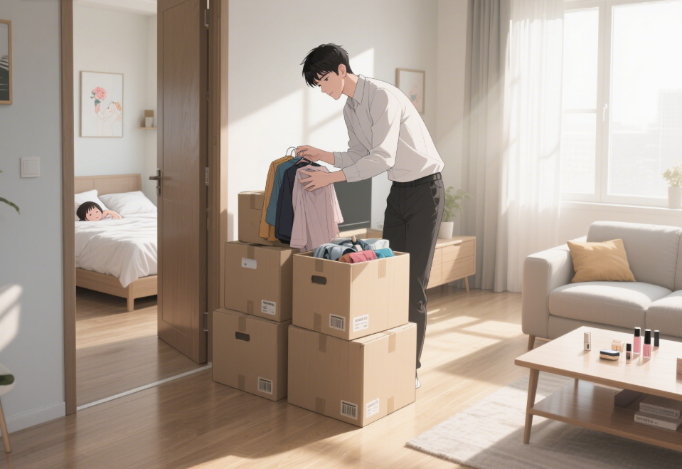 第二天早上,我很早就醒了。朵朵还在睡,我轻手轻脚地起床,走进苏蔓的卧室 —— 其实就是客房,她这半年一直睡在那里。我把她的衣服、鞋子、化妆品都收拾好,装进几个大箱子里,放在门口。