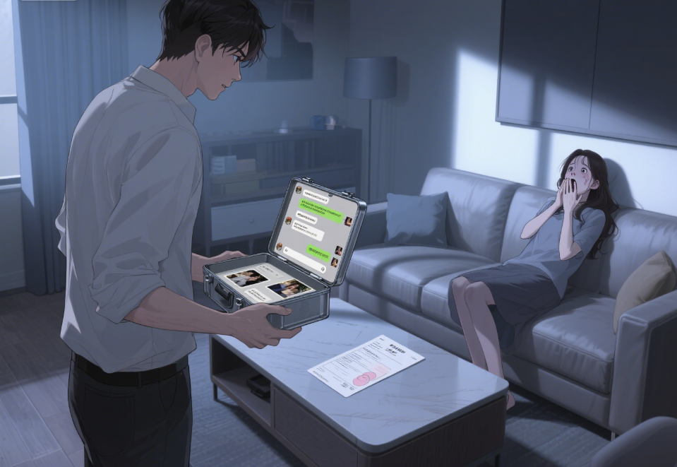 她以为我会像以前一样,顺着她的话答应,以为我永远不会揭穿她的谎言。可我转身走进书房,把那个铁盒拿了出来,放在她面前,慢慢打开。当她看到里面的聊天记录、酒店账单、照片时,脸上的笑容瞬间僵住,脸色一点一点变得苍白。