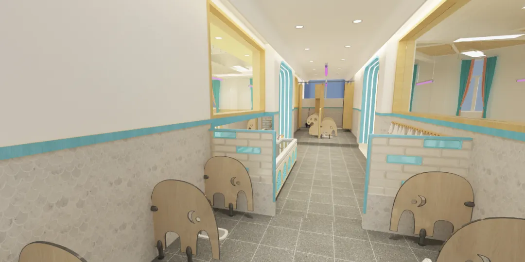 卫生间是幼儿园必不可少的功能空间,也是幼儿养成卫生习惯、建立隐私意识与性别认知的关键场所。在我们看来,它的设计需紧扣 “