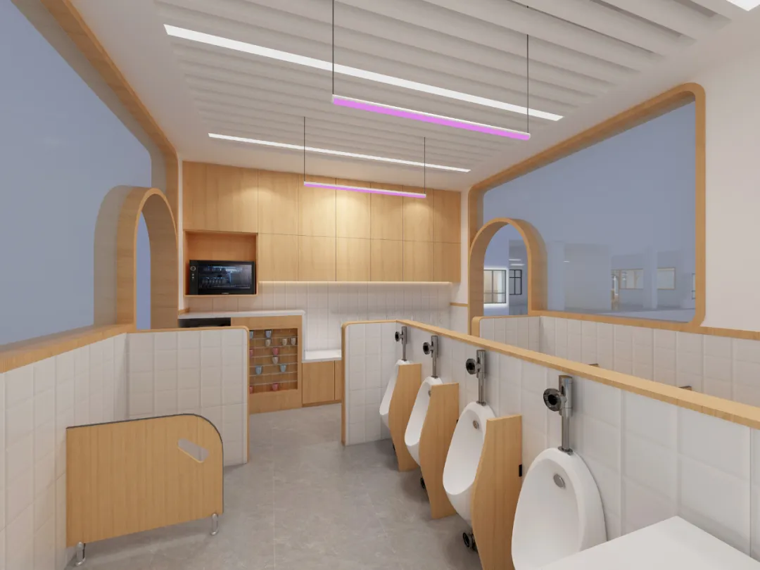 卫生间是幼儿园必不可少的功能空间,也是幼儿养成卫生习惯、建立隐私意识与性别认知的关键场所。在我们看来,它的设计需紧扣 “幼儿适配、安全优先、卫生便捷、童趣引导”等原则,让空间既满足基础使用需求,又助力幼儿人格成长。