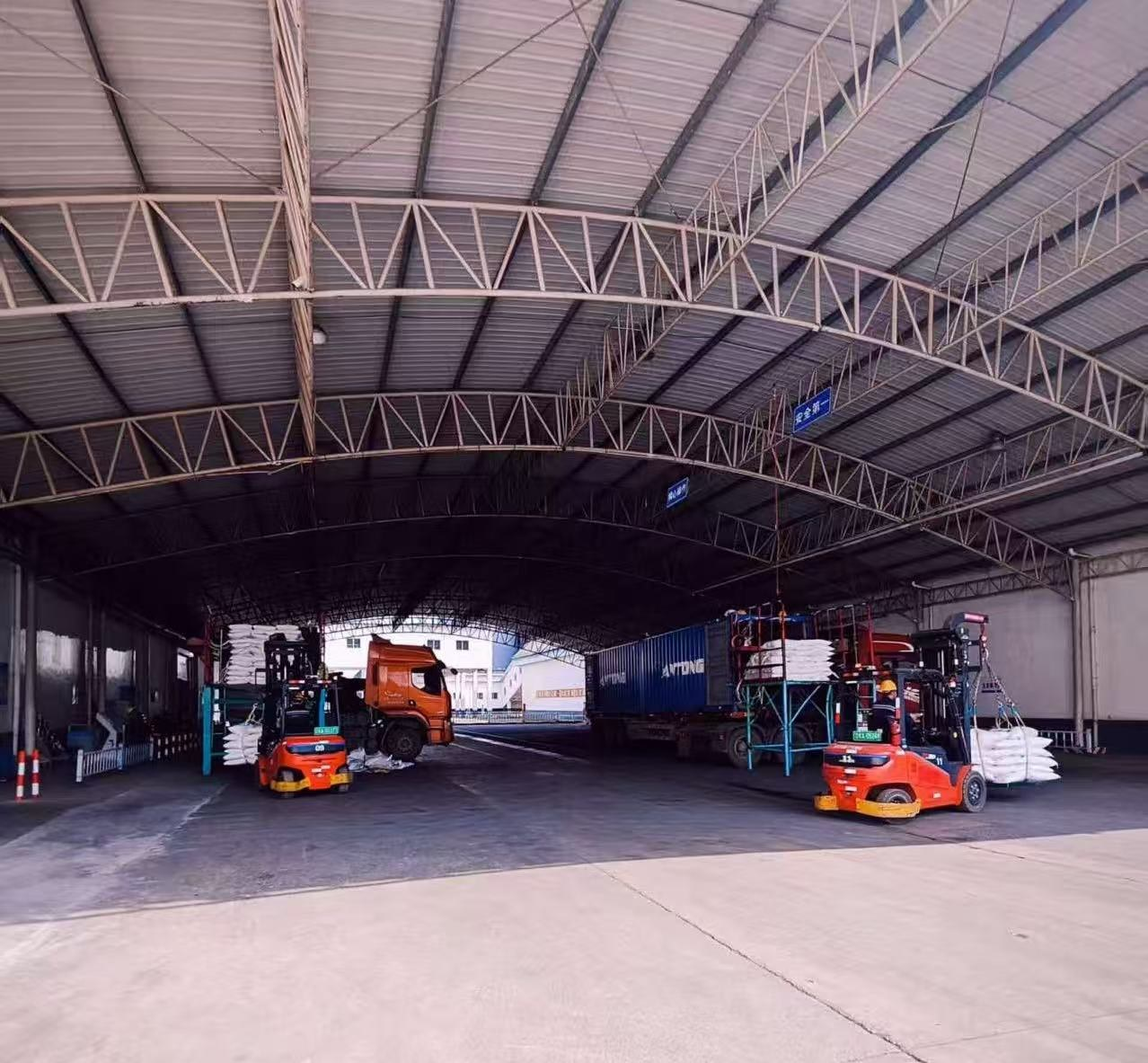 货物正被搬上重型卡车,即将发运。