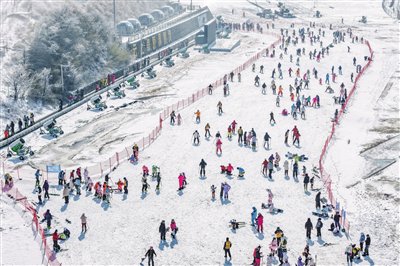 昨天,雪后初晴的安吉县山川乡云上草原滑雪场迎来客流小高峰,单日客流量达4000多人次。