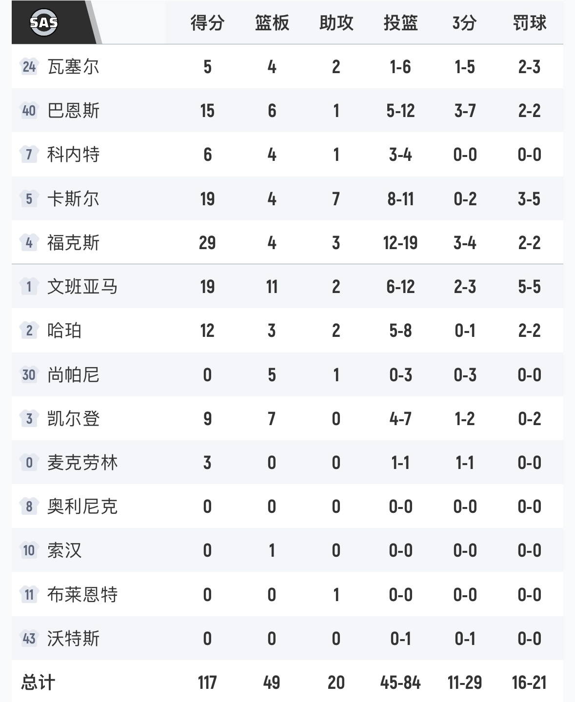 雷霆连续3次输给马刺,霍姆格伦、文班亚马数据分别是:12月26号,雷霆输15