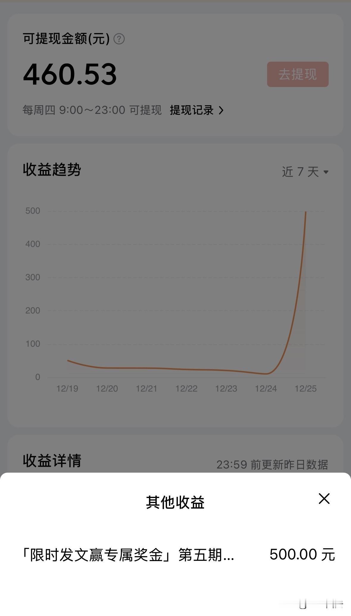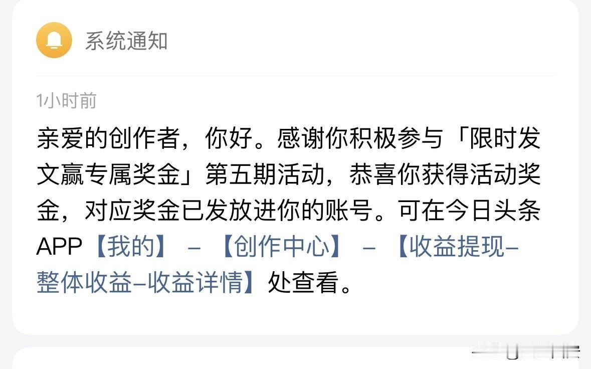 打开头条, 收到了上次参加活动的奖金💰! 500元, 真的很惊讶。 每天头条都