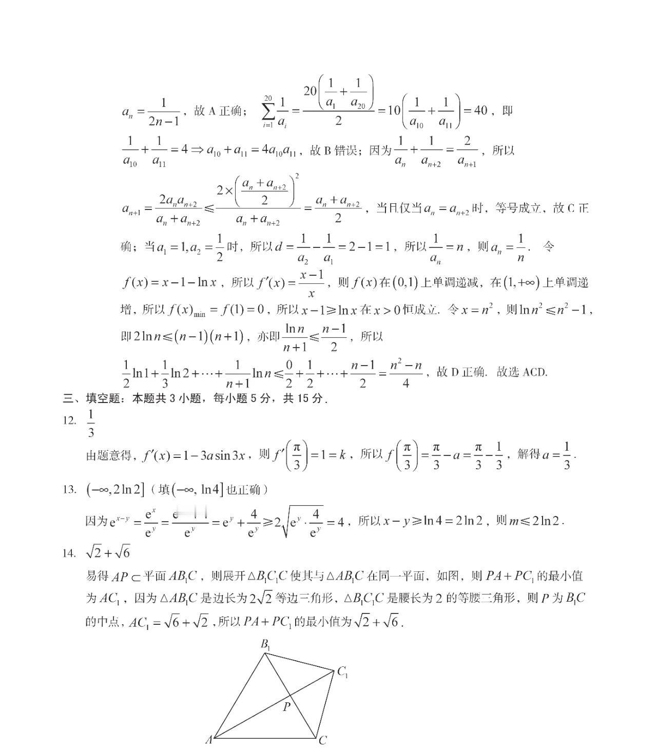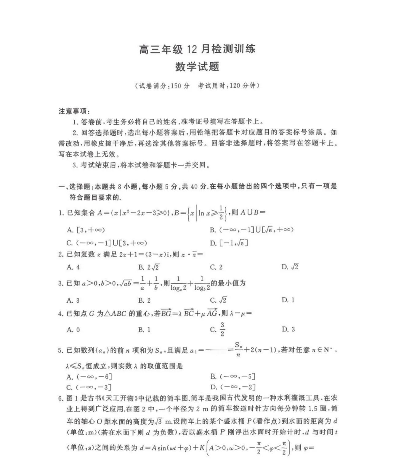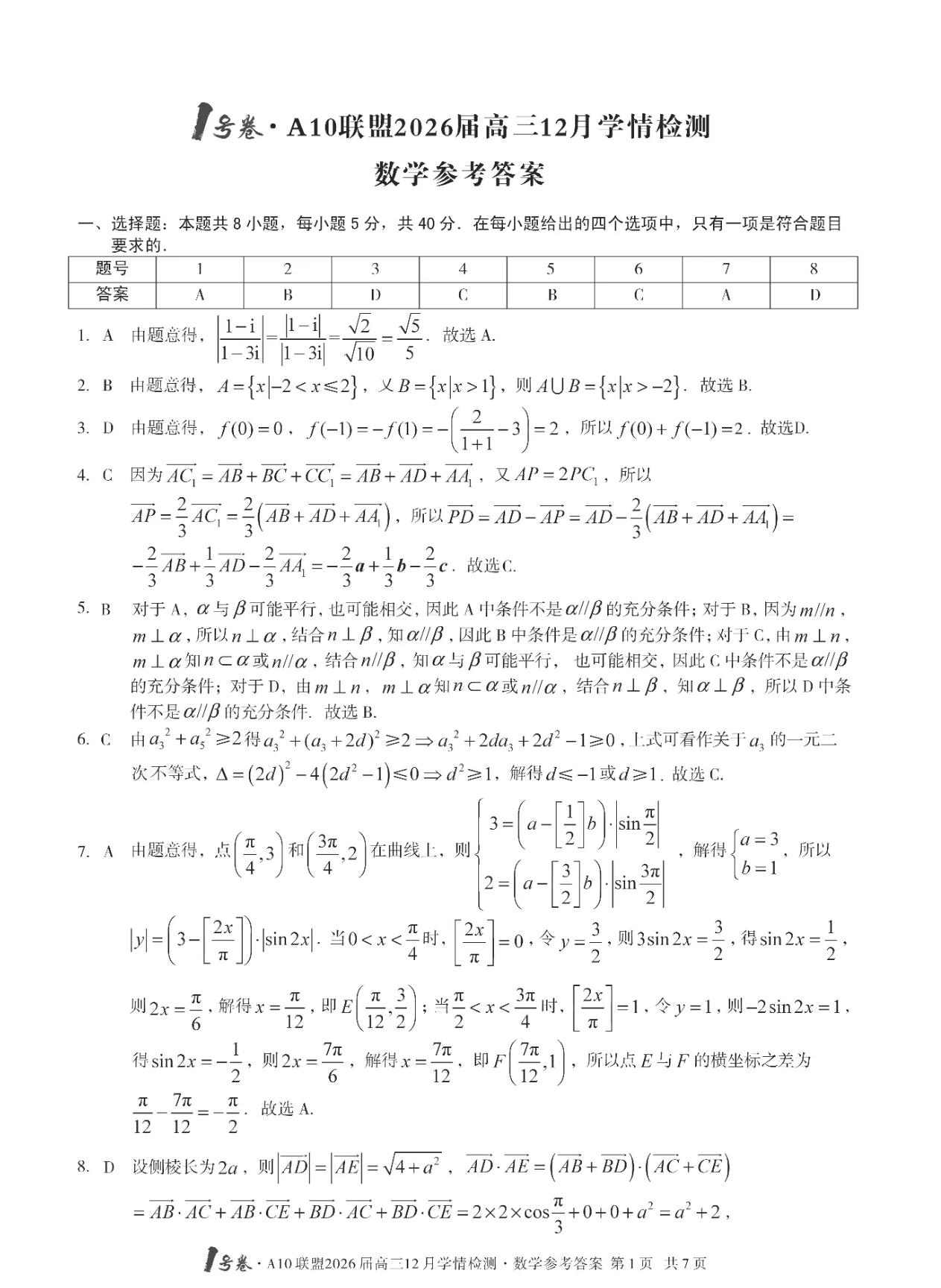 安徽省A10联盟和T8联考2026届高三年级12月检测训练数学单选题多选题填空题及其详细解答。