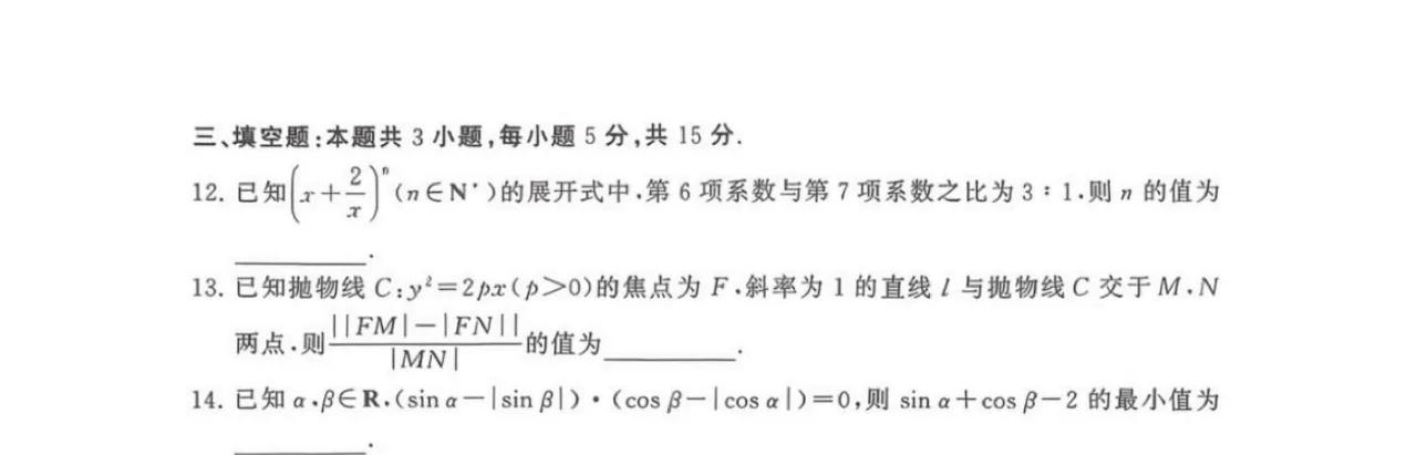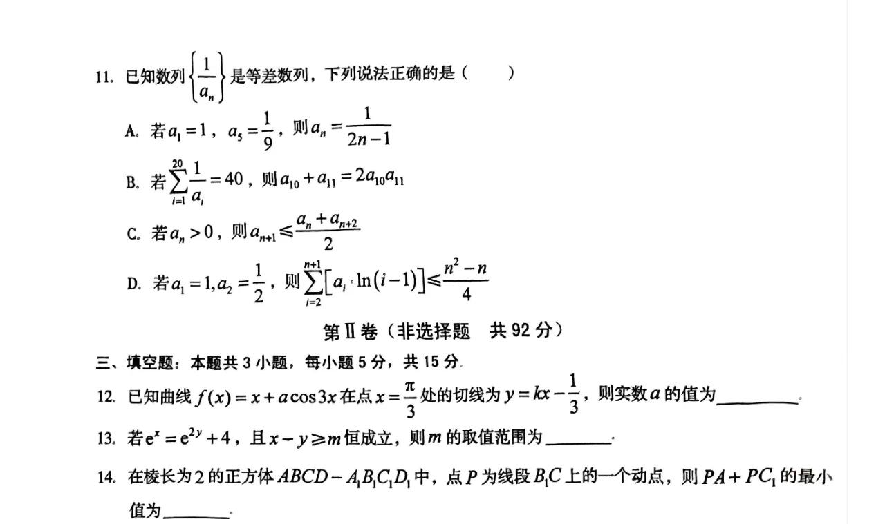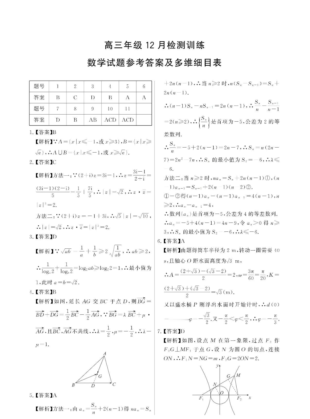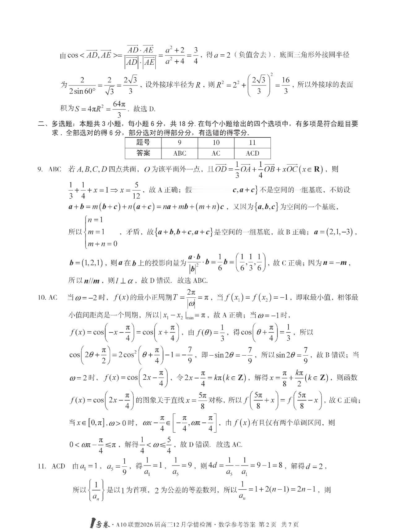 安徽省A10联盟和T8联考2026届高三年级12月检测训练数学单选题多选题填空题