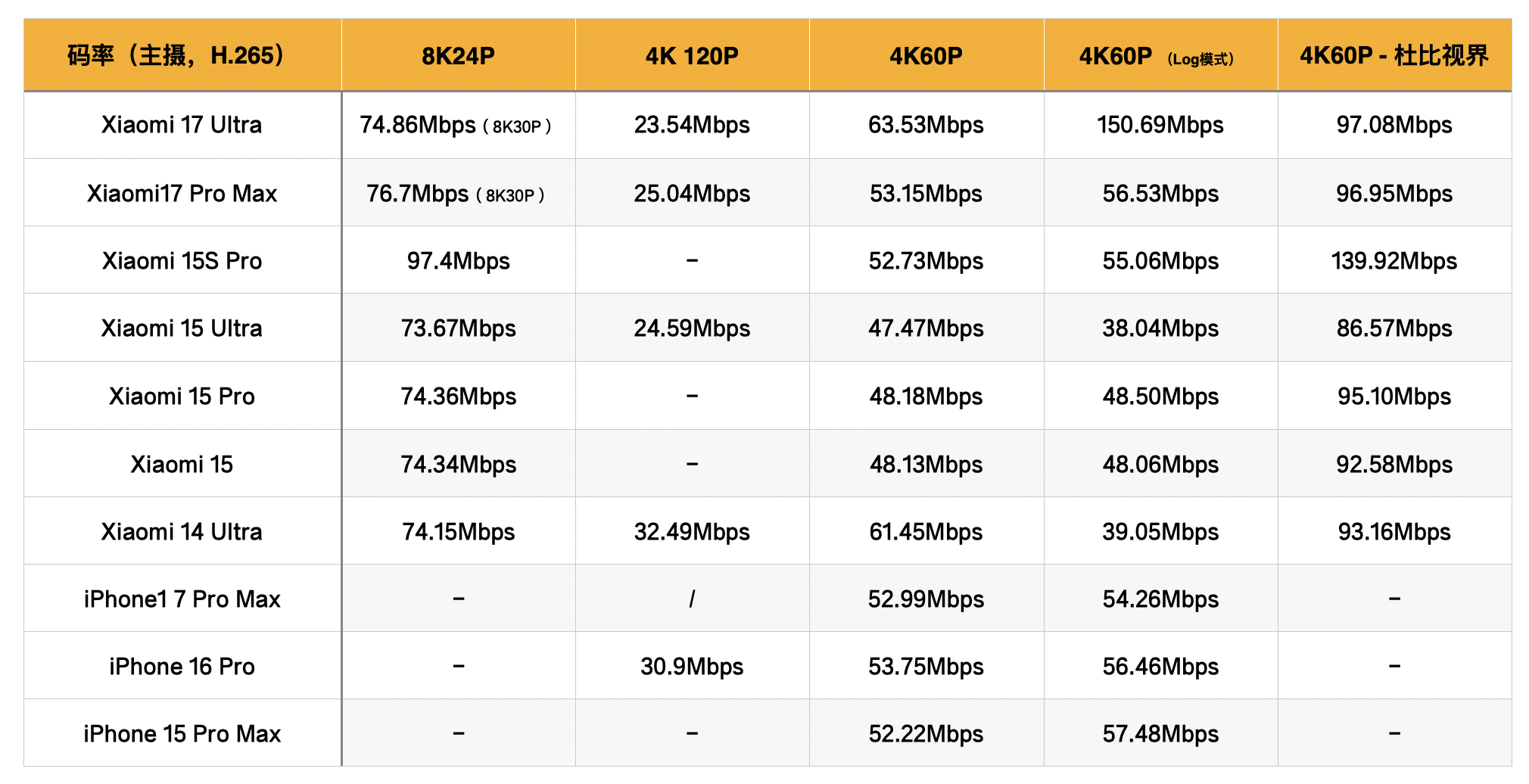 录像除了LOFIC加持之外,小米17 Ultra在视频码率上也有了很大的提升,就拿常用的4K 60帧来说,小米17 Ultra的码率来到了63.53Mbps,Log模式下更是达到了150.69Mbps。一个手机拍摄视频,尤其是Log模式下的视频有更高的码率,意味着更丰富的细节、更精准的色彩和更多的创作空间,小米17 Ultra这波视频能力算是大加强了!(图源:大梦)小米17ultra