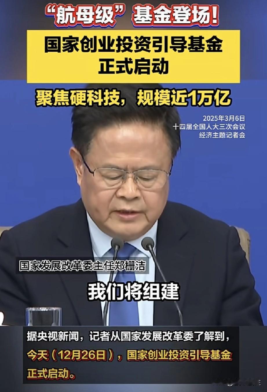刚刚重磅! 近1万亿元人民币! 国家创业投资引导基金正式启动运行!将对集成电路、人工智能、航空航天、低空经济等领域的早期项目和企业加大投资力度。 重点科技线——聚焦人工智能、生物制药、量子科技、6G等前沿领域,预计撬动万亿级社会资本。重点投向人工智能、量子科技、氢能储能等硬科技前沿领域,并设置20年存续期,其中10年为投资期,10年为退出期。 钱不是问题,关键是科技技术前沿的技术突破,瞄准的都是大国竞争的科技硬实力。未来谁能掌握科技话语权,谁能立于不败之地。 炒股就要炒政策预期和加码方向,有题材有落地有想象空间,也是市场最强方向!
