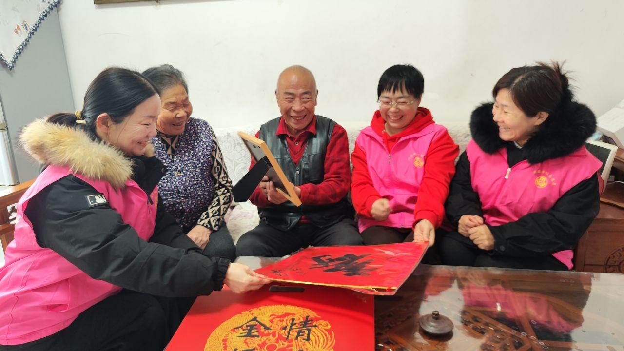 在王永红老人家中,志愿者将书法名家书写的“福”字和一幅装帧精美的金婚合影送到老人手中,并与老人促膝长谈,倾听他们半个世纪以来相濡以沫的感人故事。