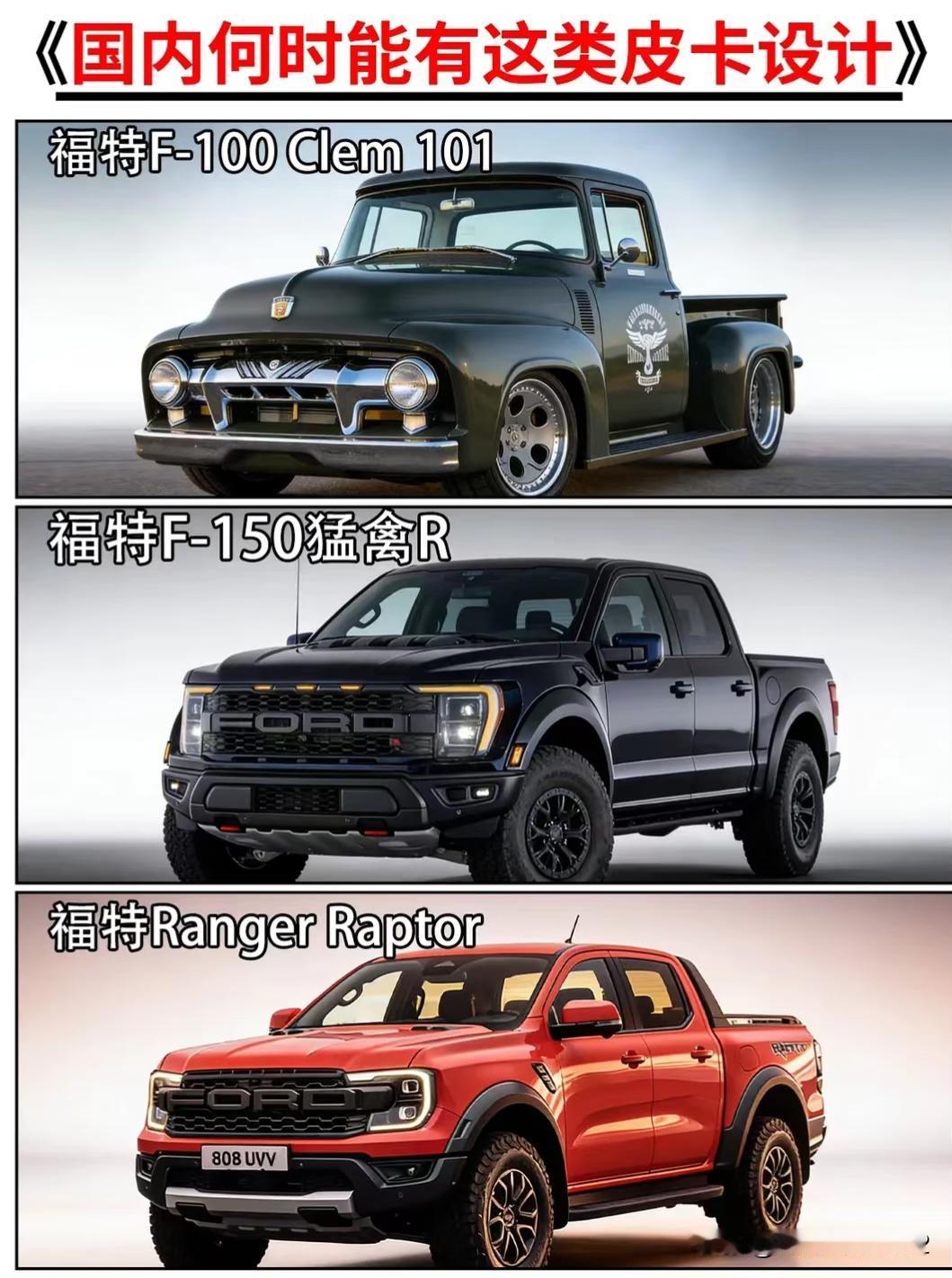 国内什么时候能有这类皮卡,特别是插电混动的皮卡,那就更霸道了! 刷到这波皮卡直接被帅晕🤩 福特 F-100 那复古绿自带复古 buff,Cybertruck 的赛博棱角感能直接炸街,猛禽的霸气更是把越野魂戳得死死的… 国内什么时候能有这么帅的皮卡。咱国内皮卡什么时候能摆脱 “工具车” 标签,整个这又酷又能装的款啊?这设计开出去,回头率不得焊死在 100%🚜✨ 宝子们觉得哪款最戳你?要是国内上这种霸气的插电混动皮卡,你会直接冲吗🙋♀️ 皮卡 福特猛禽r版 美国gmc皮卡 赛博朋克皮卡 m1皮卡 福州白色皮卡 福州赛博皮卡