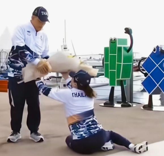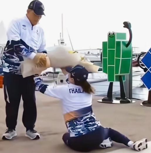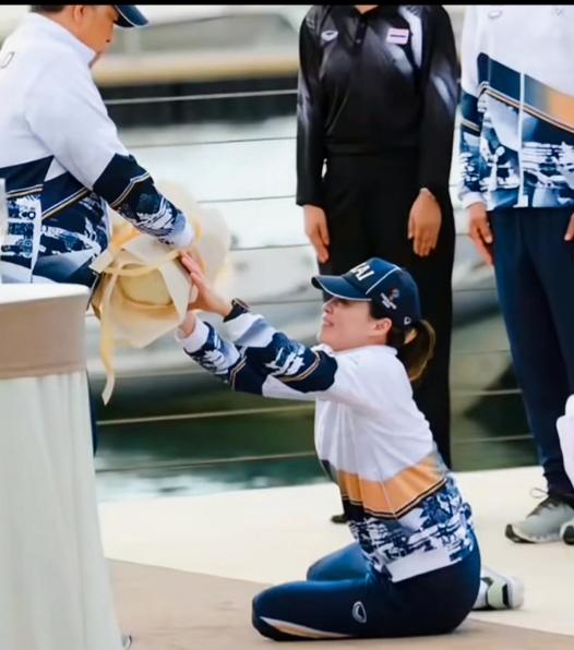 苏提达细心给泰国国王擦汗!苏提达给泰国国王擦汗时,这姿势是不是还挺有特点啊!