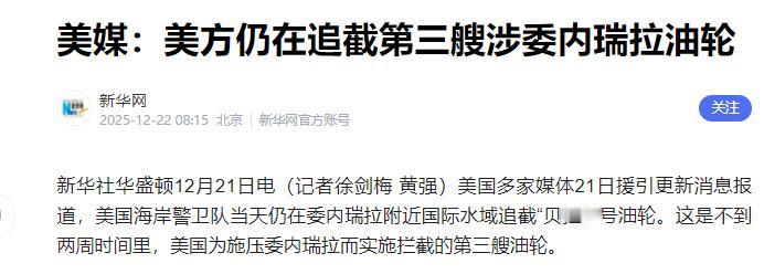 “将计就计",贝拉1号狂发75次求救信号,让美国海军颜面尽失…… 12月21日清晨,美国海岸警卫队对“贝拉1号"油轮进行拦截,可人家根本不理这茬,一脚油门就跑,美国人就追,“贝拉1号"连发75次求救信号,上演了一曲“猫捉老鼠"的游戏。 “贝拉1号”这次的航程特别简单,就是空载去委内瑞拉装原油,可偏偏撞在了美军的“枪口”上。 为啥呢?因为美国一直在制裁委内瑞拉石油出口,最近更是加了码,在加勒比海域布下天罗地网,专门拦截往返委内瑞拉的油轮。 这次美军给“贝拉1号”扣的帽子挺牵强,说它属于“影子船队”,和伊朗石油贸易有牵连,还挂着假的巴拿马国旗,算是无国籍船只,所以有权登船检查。 可明眼人都知道这全是借口,而且这不是美军第一次干这种事儿。 就在“贝拉1号”被拦截前不久,“船长号”油轮满载委内瑞拉原油正常航行,直接被美军扣下押到了得克萨斯州,美方连个像样的证据都没拿出来。 更冤的是“世纪号”,挂着合规的巴拿马国旗,上面还载着近200万桶属于中国公司的资产,结果美军直升机直接索降突袭登船,至今船上的船员都还失联着。 这接二连三的拦截扣船,说白了就是美军在公海上的无差别围猎。 在美军眼里,对付“贝拉1号”这艘空油轮,简直是手到擒来的事儿,可他们万万没料到,“贝拉1号”根本不跟他们硬刚,而是玩起了巧劲。 从被盯上开始,“贝拉1号”就一门心思往大西洋公海冲,美军则死死咬着不放,从加勒比海一路追到离安提瓜和巴布达480公里外的公海,足足追了12个小时。 “贝拉1号”船体轻巧,正好能在暗礁密集的海域灵活穿梭,美军的大舰艇虽然快,但在这种复杂水域根本不敢放开手脚,怕撞礁搁浅,只能小心翼翼地跟在后面,好几次都被拉开距离。 而“贝拉1号”最绝的一招,就是连续发了75次求救信号,这可不是真遇到危险了,而是一场精准的舆论战。 船员们用国际标准频率广播,一遍遍地说自己遭遇不明武装威胁,请求紧急支援,平均每19分钟就发一次,从白天到晚上就没停过。 这些信号覆盖范围有几百公里,周边所有商船都能听到,国际海事组织也完整记录了下来,想赖都赖不掉。 这一下直接把美军架到了火上烤,本来还想装成“正义的执法者”,结果瞬间就成了全世界眼中的“霸凌者”。 到最后,美军追得狼狈不堪,舰艇燃油消耗过半,直升机的续航也快到极限了,再追下去不仅无功而返,搞不好还会出意外,只能不了了之。 更丢人的是,这场闹剧引发了国际社会的一致批评。 委内瑞拉总统马杜罗直接在电视上骂美军是“现代海盗”,古巴、哥伦比亚等拉美国家纷纷发声抗议; 巴西总统卢拉更是严肃警告,说这种做法会开危险先例,后患无穷;俄罗斯不仅指责美军破坏海上航运秩序,还拿出卫星数据给委内瑞拉撑腰; 就连欧盟都呼吁要遵守国际法,毕竟他们很多国家的商船都在这片海域航行,谁也不想自己的船哪天被美军随便拦截。 甚至美国国内都有反对声音,不少共和党参议员直言,这就是战争的前奏,不能再让美军当世界警察到处横行霸道了。 说到底,美国总觉得自己军事力量强,就能在公海上为所欲为,可他们忘了,民心向背才是根本,霸权主义迟早会被戳穿。 现在国际社会越来越反感美国的单边制裁和海上霸凌,这次事件更是让美国的霸权形象再次受损。 以后美国再想在公海上胡作非为,可得好好掂量掂量,毕竟不是所有国家都愿意忍气吞声,也不是所有商船都会束手就擒。