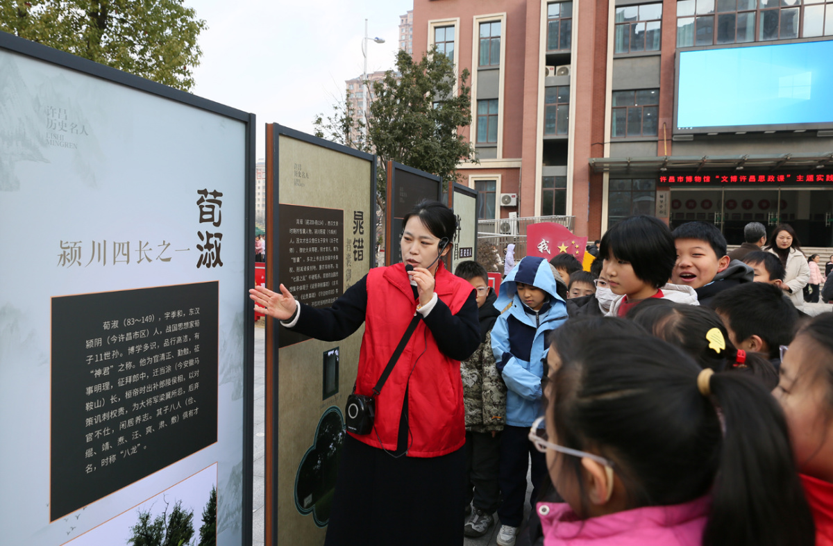 “我们都知道,咱们许昌有曹魏故都的称谓,那曹操是如何许昌成就他的一番霸业的呢?”在志愿者的讲解下,同学们对于城市历史和文化积淀的了解,听得十分入迷,不时会有同学贴近展板,想要进一步了解许昌历史上的点点滴滴。