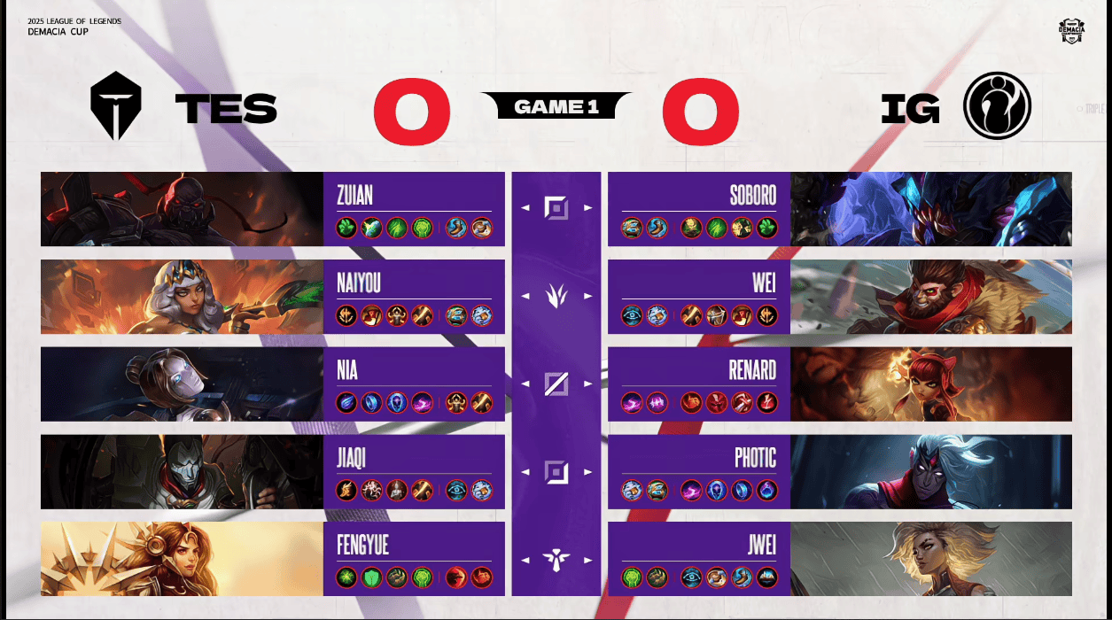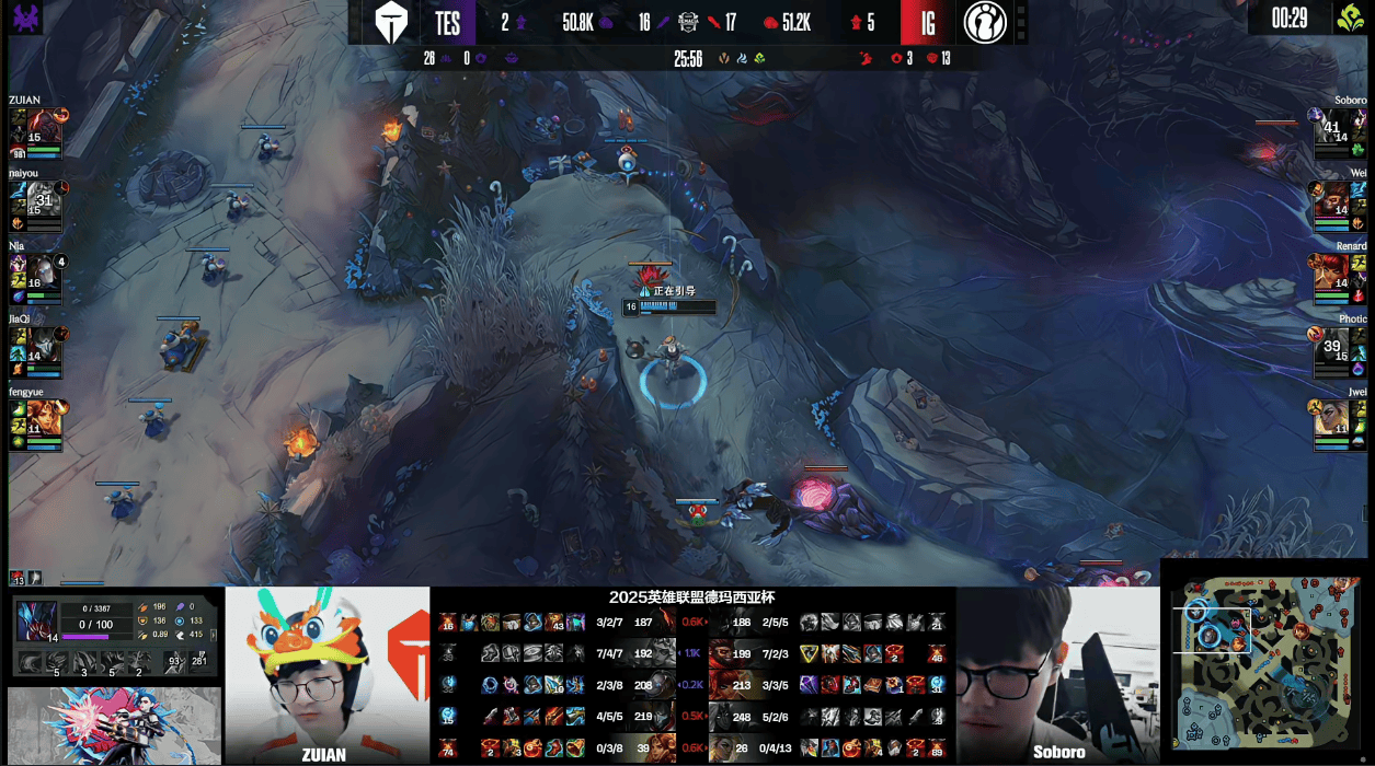 虎扑12月26日讯GAME1:TES蓝色方;IG红色方