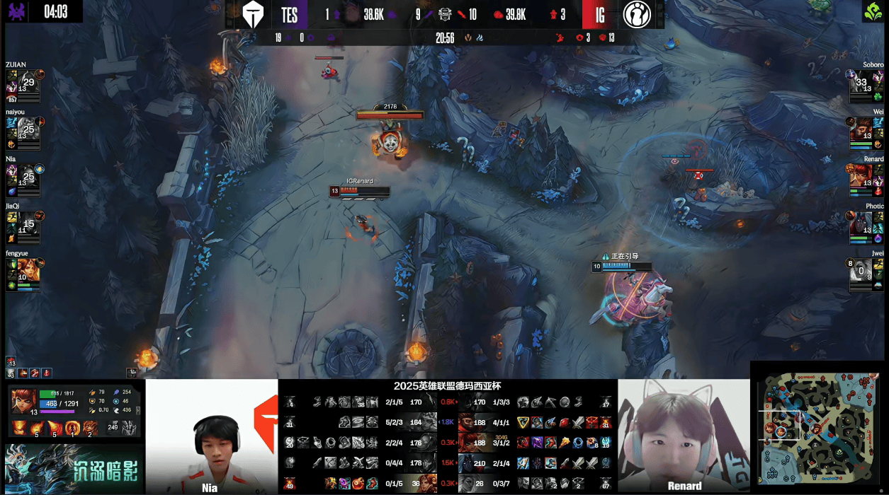 20分钟,TES率先拿下厄塔汗,IG团战形成包夹轻松完成2换4