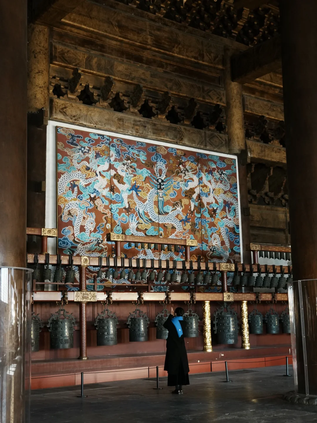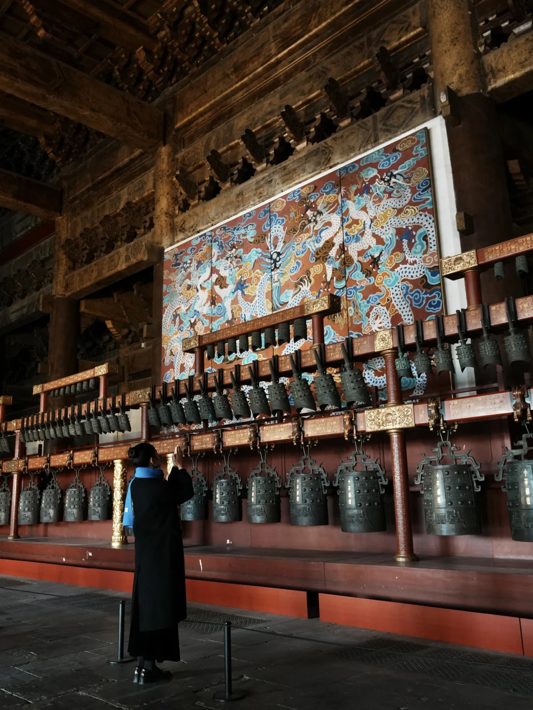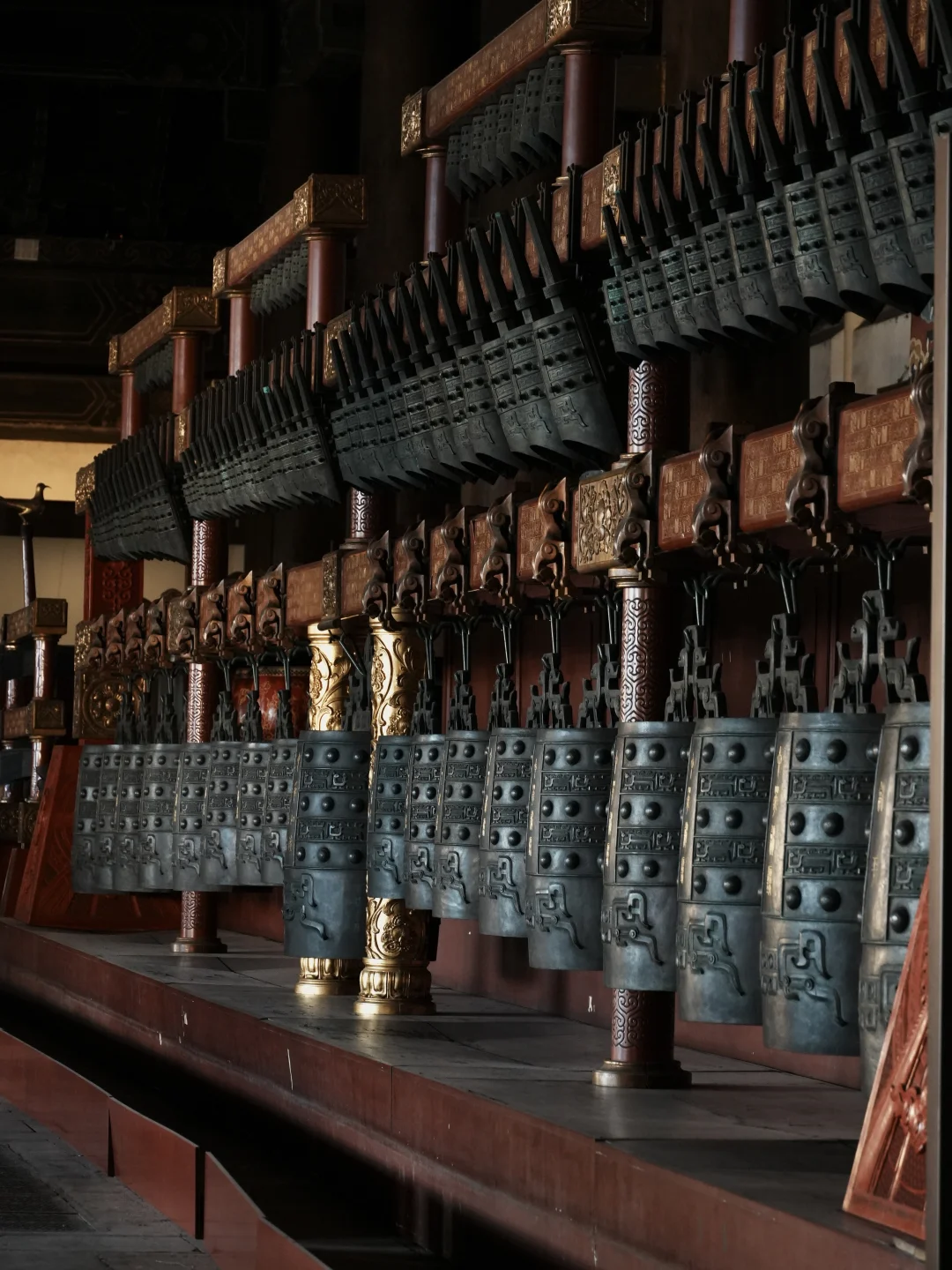 ✨中华和钟: 殿内中轴线立着千禧年铸造的国宝,复刻2400年前曾侯乙编钟的形制