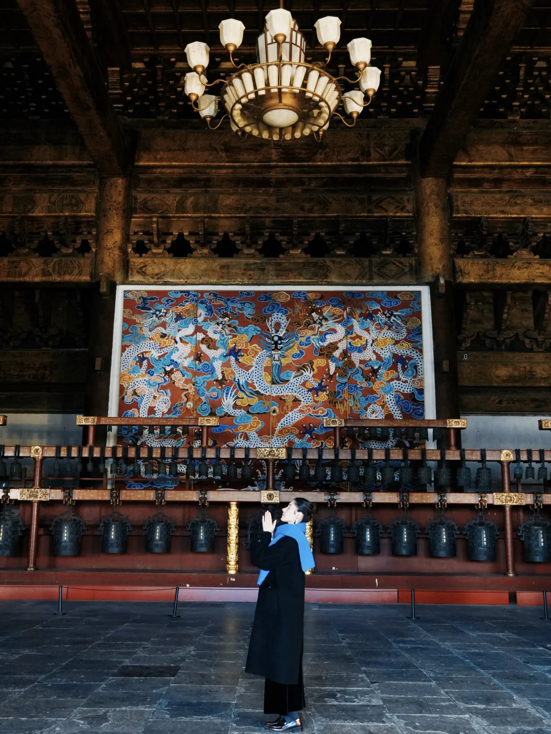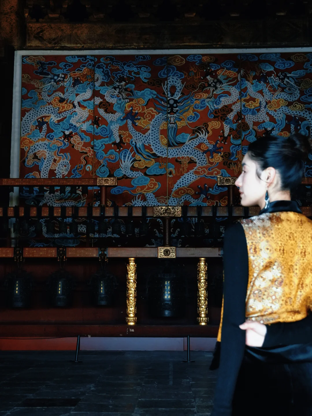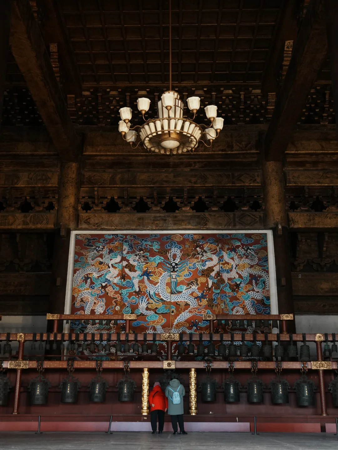 ✨中华和钟: 殿内中轴线立着千禧年铸造的国宝,复刻2400年前曾侯乙编钟的形制