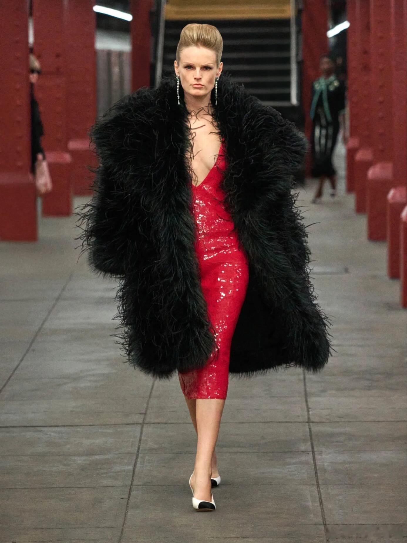 肯豆Kendall Jenner圣诞节在洛杉矶出门,已经穿上了CHANEL 刚刚在纽约发布的 2026高级手工坊系列,红色亮片连衣裙为节日氛围定下了华丽基调,黑羽披肩打破单调,蓬松质感与紧身裙形成“柔与媚”的对比。风格大赏时尚灵感解读