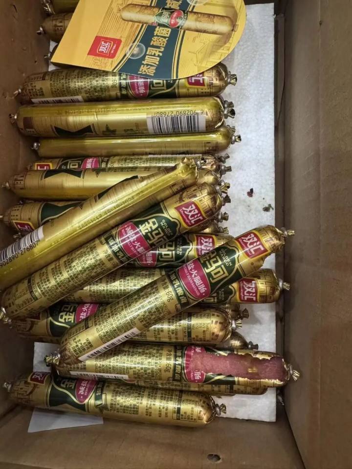 据顾先生讲述,12月19日,他在双汇食品官方旗舰店下单两箱火腿肠,22日中午收到快递。当日下午4时许,顾先生在公司前台拆开快递,恰好位于监控范围内,监控中可见快递外包装完整。