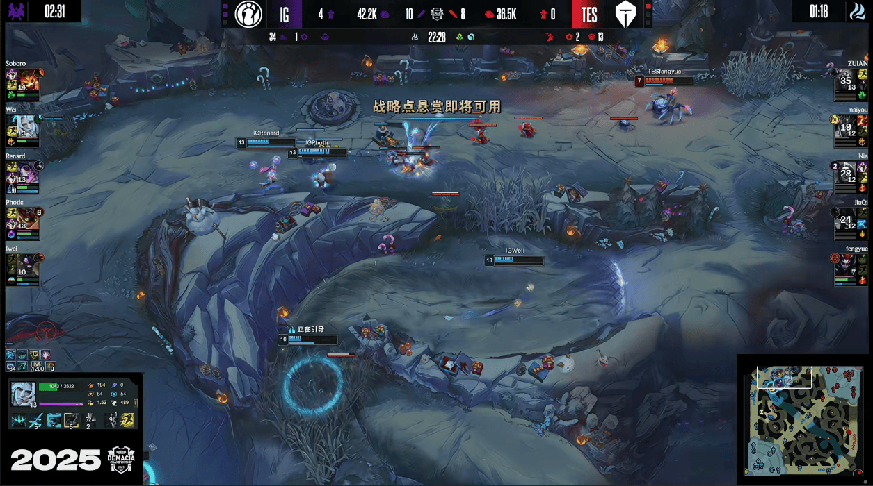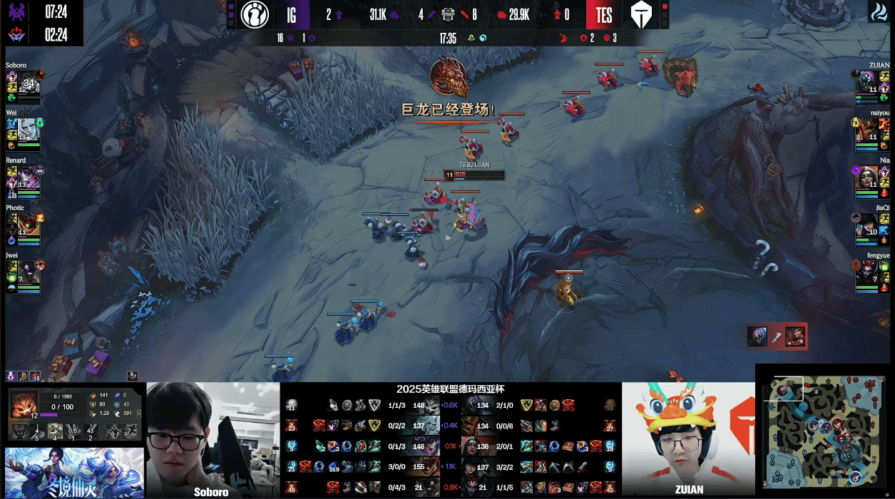 虎扑12月26日讯GAME4:IG蓝色方;TES红色方