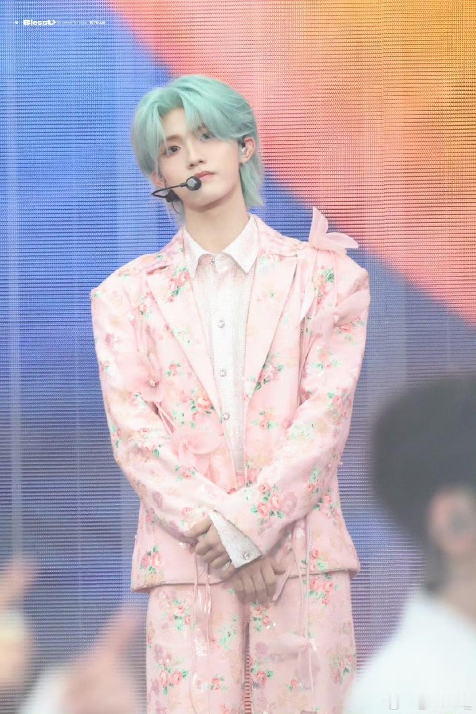 苏新皓小桃花妖塑 可以是身披粉西装在舞台上绽放的小桃花妖,也可以是私下笑眼弯弯的