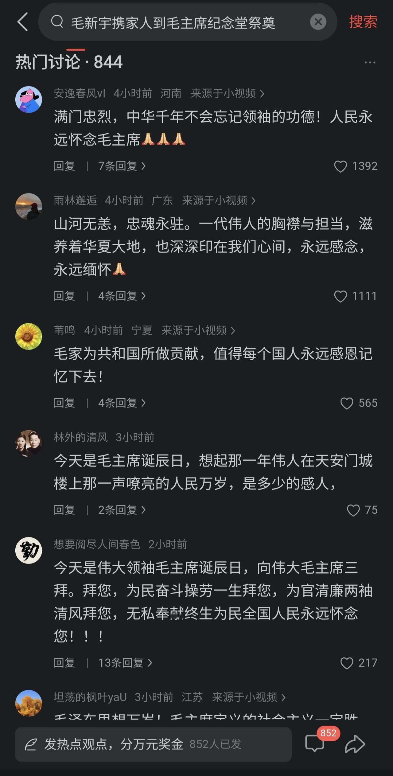 今天是毛主席诞辰,却没发现官媒大规模报道,谈论纪念者也不多,着实奇怪。 毛主席在我们年轻人眼里其实更像一个符号,一个象征,一个神话。毕竟我们离他老人家的年代已经太过久远,去年买了一套毛泽东选集,很是羞愧,一本也没读完,今年一定要拿出来读,给大家分享。 如果说文集里比较有名的篇章应该是《矛盾论》《实践论》《论持久战》,其实不仅是一种对国家和党的历史的学习,也是一种生活中运用哲学方法在社会生存的学习。 已经读过的篇章纪里面印象深刻的是《星星之火,可以燎原》,原来历史书上主要强调了毛主席的乐观主义精神,因为在井冈山也正是革命最脆弱的时期。读过后我更佩服毛主席了,他绝不仅仅是历史教科书中说的革命乐观主义精神,而是实实在在详实分析当时的社会现状,运用极为高瞻远瞩的战略目光得出的结论,除了他,谁能预判到仅剩火种的革命后来真的星火燎原了呢? 怀念领袖毛主席