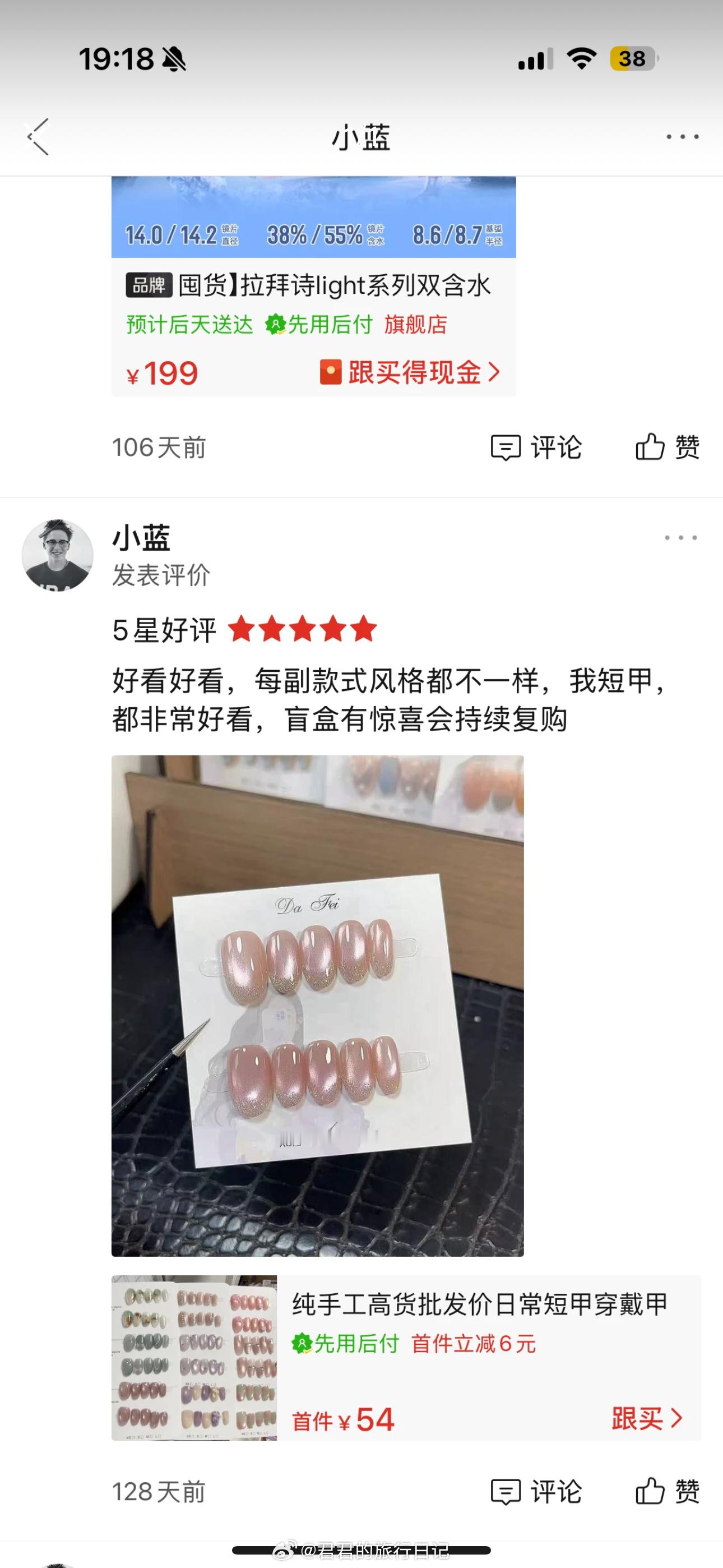 有粉丝通过陈宥维的手机号,搜到他的pdd拼小圈,花54元给女友买了10副穿戴甲,