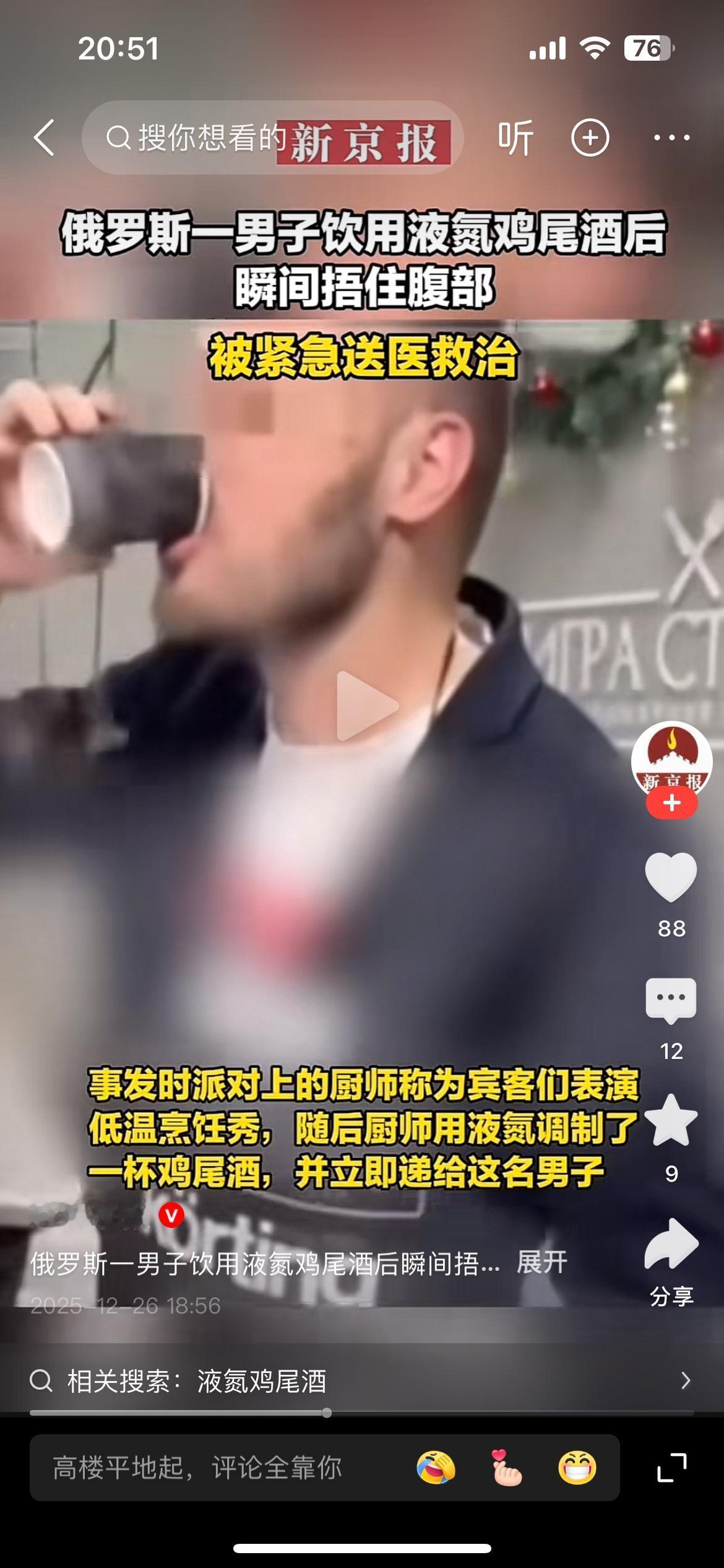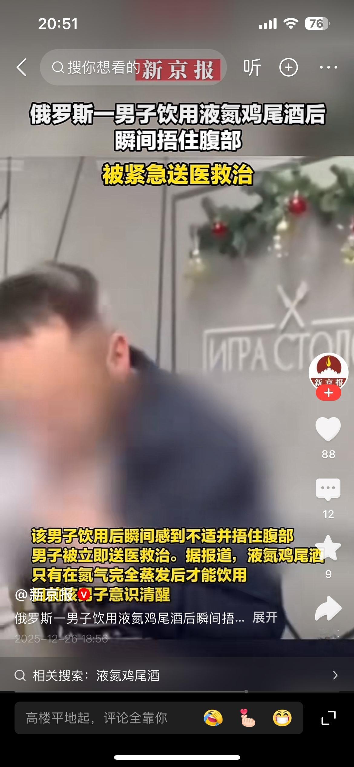 无论是液氮鸡尾酒还是什么酒,只要是酒,能够让液氮蒸发完才可以喝的酒,那就是俄罗斯