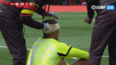 第38分钟,安哥拉门将马奎斯头部出血,他在包扎之后继续比赛。↓