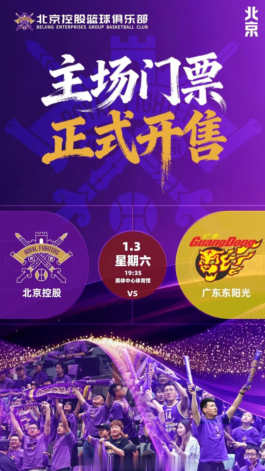 2025-2026赛季CBA常规赛1月3日北京控股vs广东东阳光门票将于明日中午12:18正式开售,2026我们主场见。